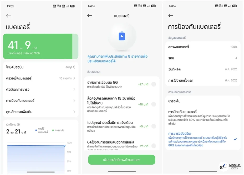 - ความทนทานระยะยาว: POCO เคลมว่าแบตเตอรี่สามารถรักษาความจุได้เกิน 80% แม้จะผ่านรอบการชาร์จไปแล้วถึง 1,600 ไซเคิล (เทียบเท่าการใช้งานประมาณ 6 ปี)