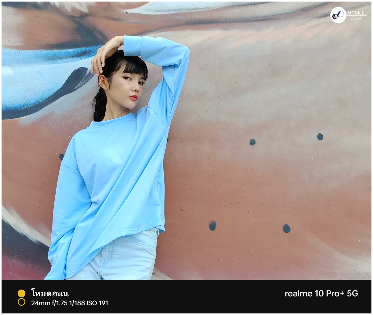สำหรับโหมดถ่ายภาพของ realme 10 Pro 5G และ realme 10 Pro+ 5G มาพร้อมอินเทอร์เฟซที่เหมือนกัน ด้านบนมีแถบเมนูเปิด/ปิดไฟแฟลชอัตโนมัติ, ตั้งเวลาถ่ายอัตโนมัติ, เปิดปิดโหมดการปรับแต่งฉากหลังด้วย AI, เลือกอัตราส่วนภาพถ่าย และตั้งค่าการใช้งานกล้องต่างๆ