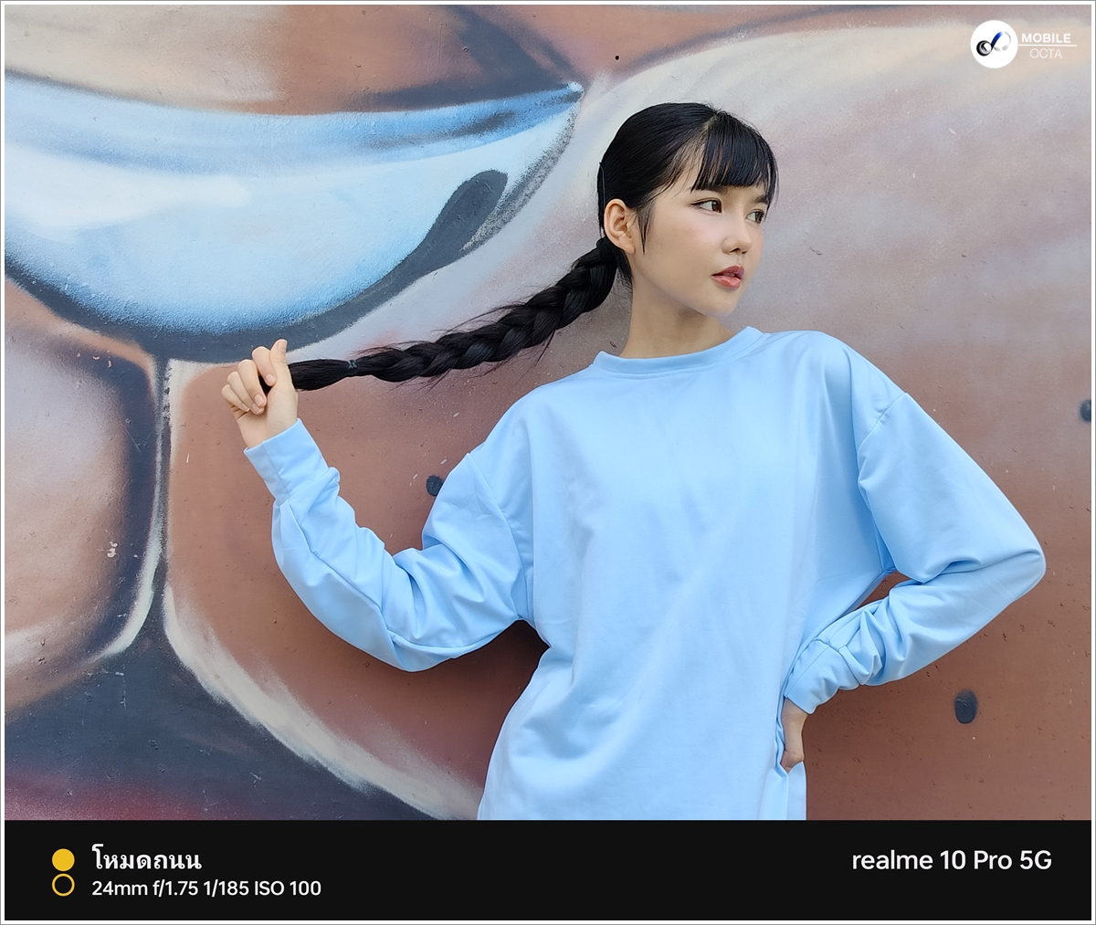 realme 10 Pro 5G และ realme 10 Pro+ 5G มาพร้อมโหมด Street Photography Mode 3.0 พร้อมลายน้้า ด้วยฟิลเตอร์ชื่อเมืองอัจฉริยะ คุณจะได้รับค้าแนะน้าเกี่ยวกับฟิลเตอร์ชื่อเมืองที่เหมาะสมที่สุดที่จะใช้โดยจะอิงตามต้าแหน่งทางภูมิศาสตร์ของคุณ หมายความว่าใช้เวลาน้อยลงในการทดสอบฟิลเตอร์และมีเวลามากขึ้นในการถ่ายภาพที่ดีที่สุดของคุณ