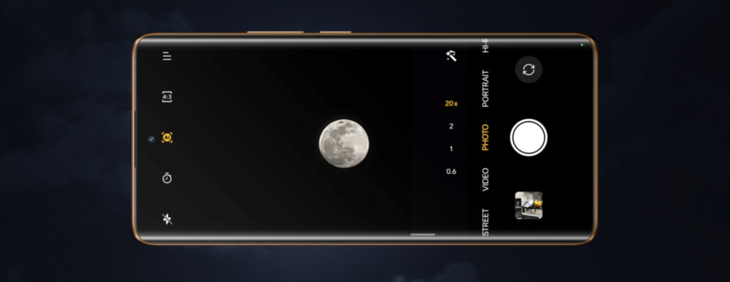 โดยในโหมดดวงจันทร์ realme 11 Pro+ 5G สามารถปรับการเปิดรับแสงอัตโนมัติเป็นความสว่างของแสงดวงจันทร์ และใช้การซูมเลนส์เดี่ยวแบบไม่สูญเสียรายละเอียดได้ถึง 4 เท่า และอัลกอริทึมหลายเฟรมแบบไฮเปอร์เซกเมนต์เพื่อให้ได้ความชัดเจนของเลนส์เทเลโฟโต้ เพื่อปรับรายละเอียดแม้แสงน้อยและพื้นที่สว่างของพื้นผิวดวงจันทร์ด้วยอัลกอริธึมดวงจันทร์ตามการเรียนรู้เชิงลึกของ Al เพื่อให้สามารถถ่ายภาพดวงจันทร์ที่คมชัดได้อย่างง่ายดาย