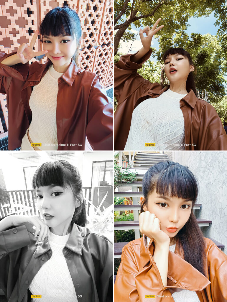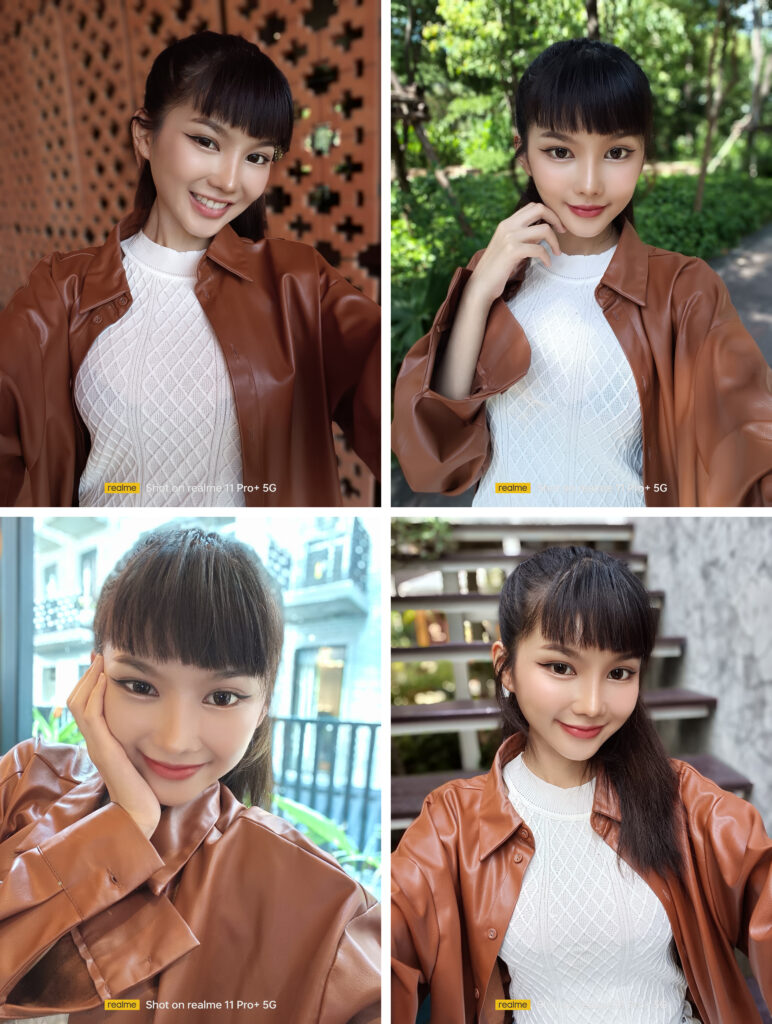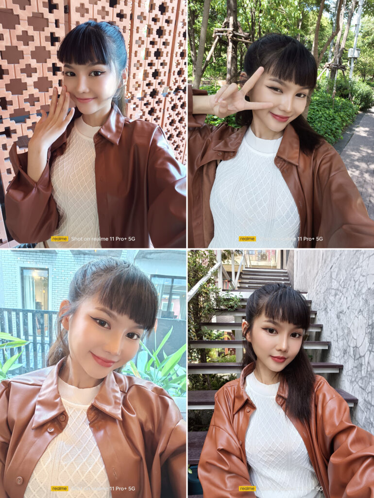 realme 11 Pro+ 5G มีความยาวโฟกัสภาพบุคคลตามอัตราส่วนทองคำ 2 เท่า (2x portrait mode) ซึ่งใกล้เคียงที่สุดและสอดคล้องกับการรับรู้ภาพของดวงตามนุษย์ อัลกอริทึมภาพบุคคล SLR มีพื้นหลังแบบธรรมชาติซึ่งสามารถทำให้ตัวหลักโดดเด่นยิ่งขึ้น การรักษาระดับพื้นผิวของผิวดำเนินการด้วยอัลกอริทึมความงามของ AI ให้พื้นผิวที่บอบบางและเป็นธรรมชาติ