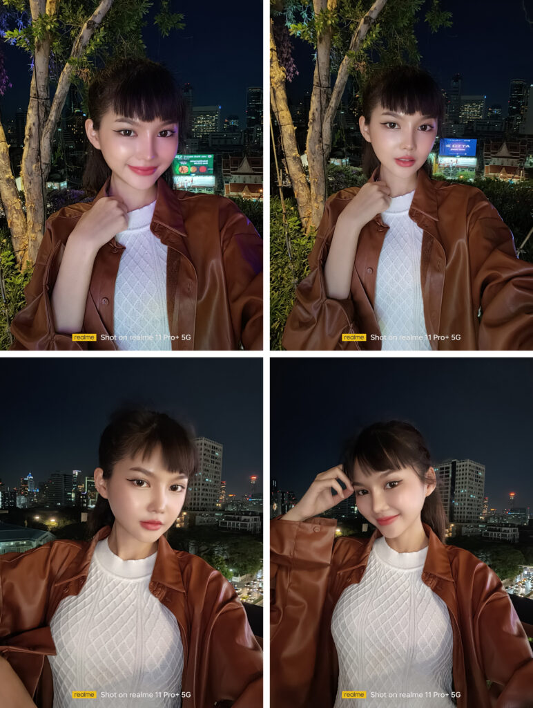 กล้องหลังของ realme 11 Pro+ 5G มาพร้อมกับเซ็นเซอร์ขนาดใหญ่ระดับเรือธง 1/1.4″ พร้อมรูรับแสงขนาดใหญ่พิเศษ F/1.69 และพิกเซลเดี่ยว 16-in-1 2.24μm เพื่อจับภาพที่มีสภาพแสงน้อยได้อย่างง่ายดายผ่านโหมด Super NightScape นอกจากนี้ยังมาพร้อมอัลกอริธึม ProLight ที่สามารถใช้เพื่อประมวลผลข้อมูลภาพในโดเมน RAW