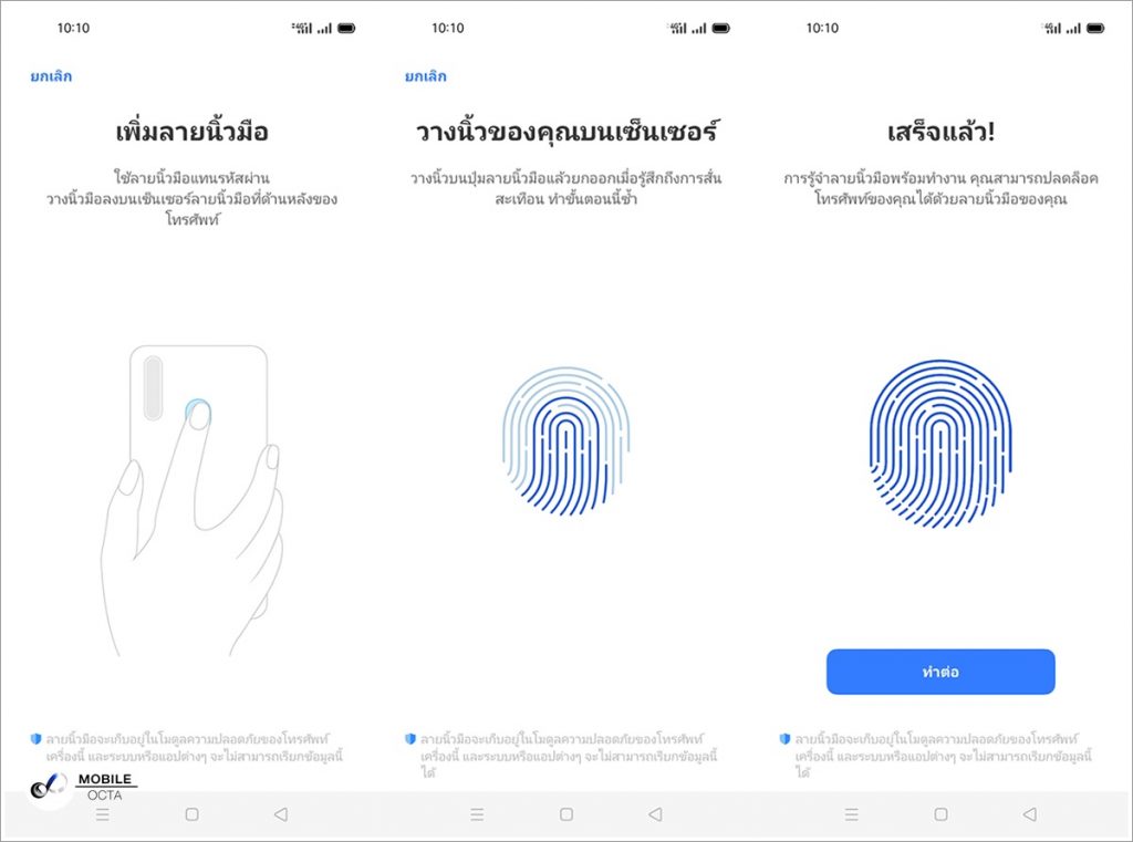 รองรับการปลดล็อคหน้าจอ ล็อคแอป และเก็บข้อมูลส่วนตัวด้วยการสแกนลายนิ้วมือแบบ Ultra-fast โดยติดตั้งเซ็นเซอร์สแกนลายนิ้วมือที่ด้านหลังเครื่อง