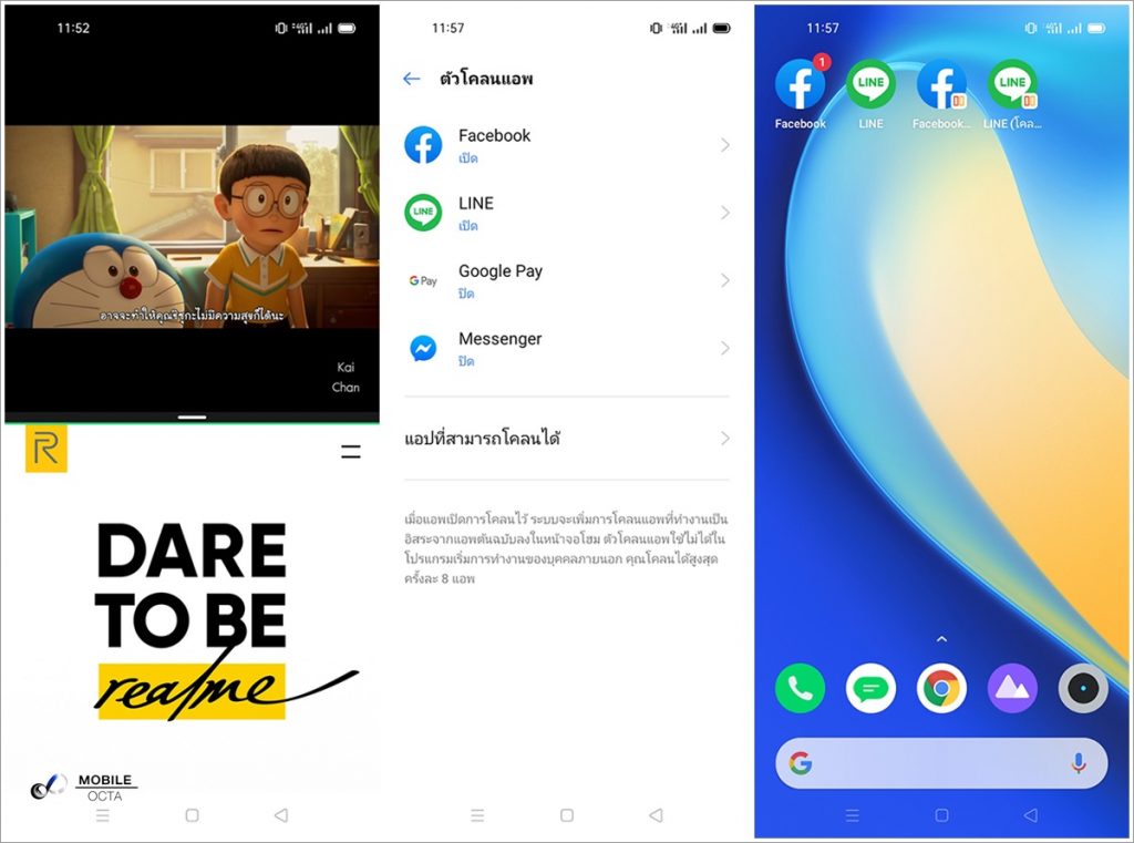 มีฟังก์ชัน Split-Screen สำหรับแบ่งหน้าจอ เพื่อให้ใช้งานได้พร้อมกัน 2 แอปพลิเคชัน รวมทั้งรองรับแอปโคลน ผู้ใช้สามารถโคลนนิ่งแอปพลิเคชัน Facebook หรือ Line นั้นหมายว่าความว่าผู้ใช้สามารถล็อกอินเข้าใช้งานแอปพลิเคชัน Line ได้ พร้อมๆ กัน ถึง 2 บัญชี