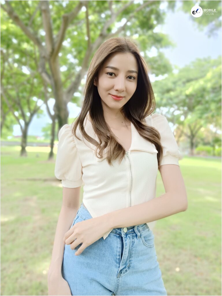 สำหรับโหมด Portrait หรือหน้าชัดหลังเบลอ สามารถปรับระดับความเบลอได้ที่ 0-100% (ค่าเริ่มต้นอยู่ที่ 60%) โดยละลายฉากหลังได้สวยละมุนมีความเป็นธรรมชาติ และยังสามารถเก็บดีเทลของตัวขอบอย่างเช่นเส้นผม หรือขอบเสื้อผ้าไว้ได้ค่อนข้างดีอีกด้วย