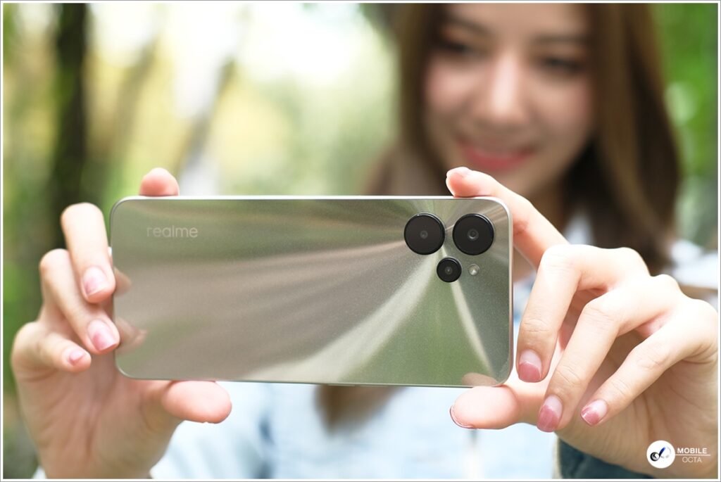 - กล้องหลักความละเอียด 50 ล้านพิกเซล Ultra HD รูรับแสง f/1.8, 80° FOV และเลนส์ 5P เลนส์ HD ระดับมืออาชีพสามารถบันทึกฉากที่คมชัดเป็นพิเศษ พร้อมรายละเอียดของภาพถ่ายเฉพาะ และเพิ่มพื้นผิวโดยรวมเป็นสองเท่า และในเซกเมนต์ที่มีราคาเท่ากันนั้น ขนาดเซ็นเซอร์ของ realme 9i 5G นั้นใหญ่ที่สุด และด้วยเซ็นเซอร์ที่ใหญ่ขึ้น ประสิทธิภาพการใช้แสงจึงสูง และความสามารถในการควบคุมสัญญาณรบกวนจึงแข็งแกร่งด้วยเช่นกัน