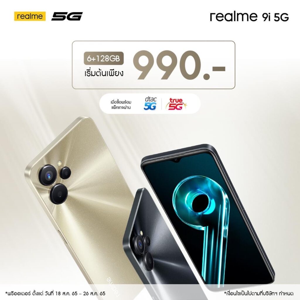 ทั้งนี้ realme 9i 5G นำเสนอสเปกความจุ 6/128GB ในราคา 9,499 บาท มีให้เลือกทั้งโทนสี Metalica Gold และ Rocking Black วางจำหน่ายที่ realme Brand Shop และตัวแทนจำหน่ายทั่วประเทศ