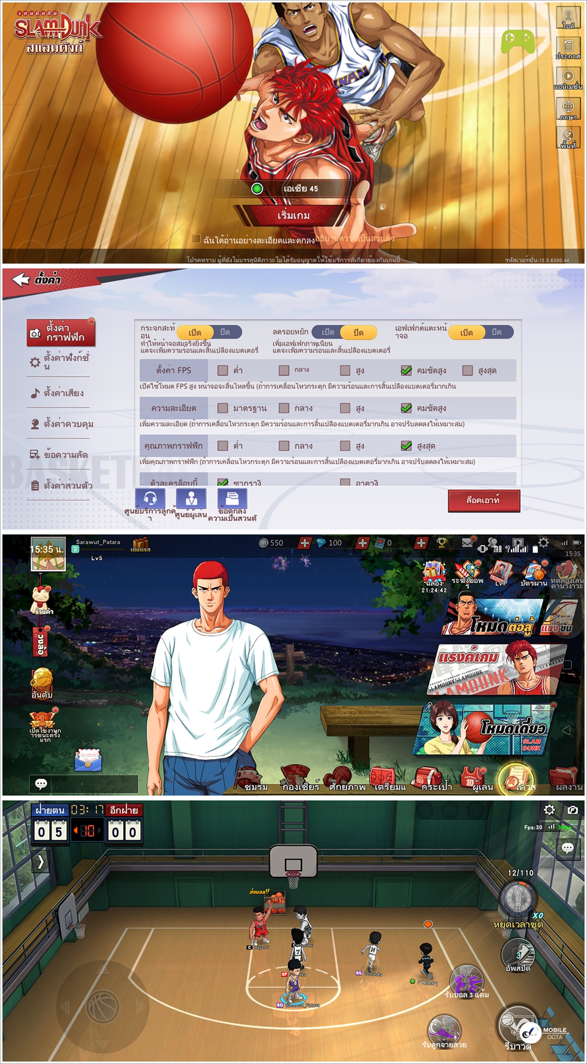 SlamDunk เลือกตั้งค่า FPS ระดับคมชัดสูง, ความละเอียด ระดับคมชัดสูง และคุณภาพกราฟิก ระดับคมชัดสูง สามารถเล่นได้ แต่จะหน่วง ๆ หน่อย ต้องปรับเป็นค่ากลาง หรือสูง ก็จะพบกับความลื่นไหล ในภาพรวมก็ถือว่าทำได้ดีในระดับหนึ่ง