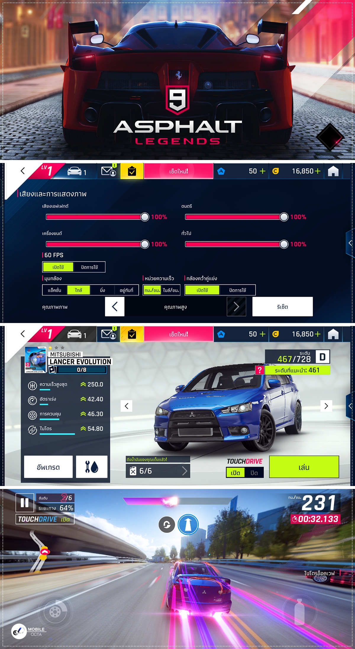 Asphalt 9 เลือกปรับกราฟิกคุณภาพสูง ด้วยชิปเซ็ต Snapdragon 870 บวกกับจอรีเฟรชเรท 120Hz ทำให้สามารถเล่นได้อย่างลื่นไหลมากๆ โดยภาพรวมถือว่าทำได้ดีมากเลยทีเดียว