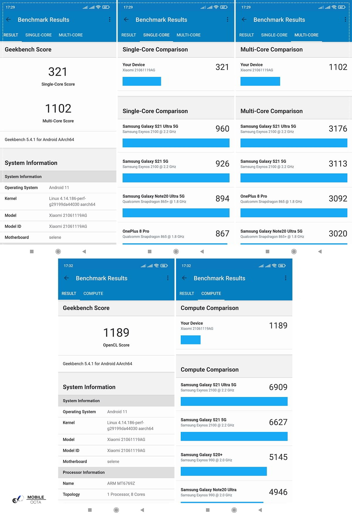 ผลการทดสอบประสิทธิภาพของ Redmi Note 10 ผ่านแอป GeekBench
