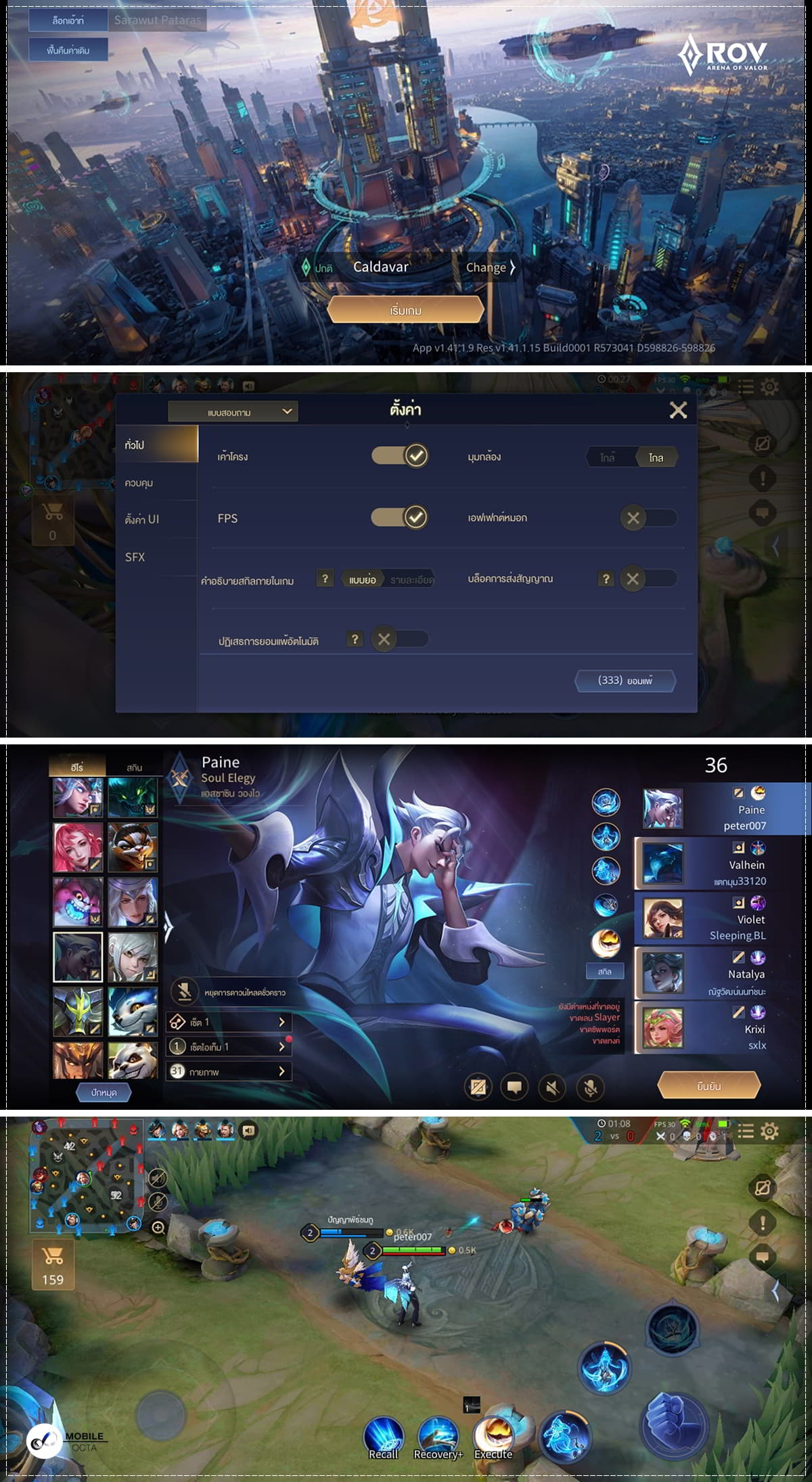 ต่อด้วย ROV เกมแนว MOBA สุดฮิตของบ้านเรา โดย Redmi Note 10 สามารถเล่นบนเฟรมเรทสูงได้อย่างสบาย การโหลดเข้าเกมทำได้อย่างรวดเร็ว ความแม่นยำในระบบสัมผัสก็ทำได้ดี โดยรวมแล้วเล่นได้อย่างลื่นไหล ไม่มีการกระตุกเลย
