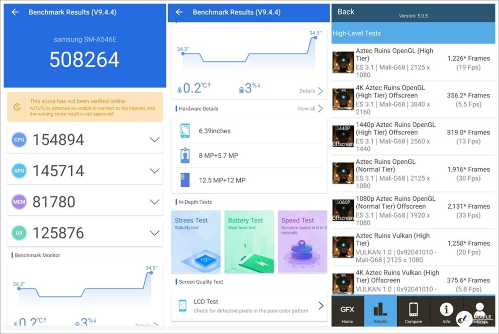 จากผลการทดสอบชิปเซ็ต Exynos 1380 จะประผลได้ไวกว่าเดิมประมาณ 30% จากการทดสอบบนแพลตฟอร์ม AnTuTu เทียบกับ Exynos 1280 บน Galaxy A53 5G รุ่นที่แล้ว พร้อมทั้งยังรองรับการเชื่อมต่อ Wi-Fi แบบเดียวกับบนสมาร์ตโฟนเรือธง รองรับฟีเจอร์ RAM Plus ที่เพิ่มแรมเสมือนได้อีก 8GB รวมเป็น 16GB เพื่อการโหลดข้อมูลที่รวดเร็วลื่นไหล