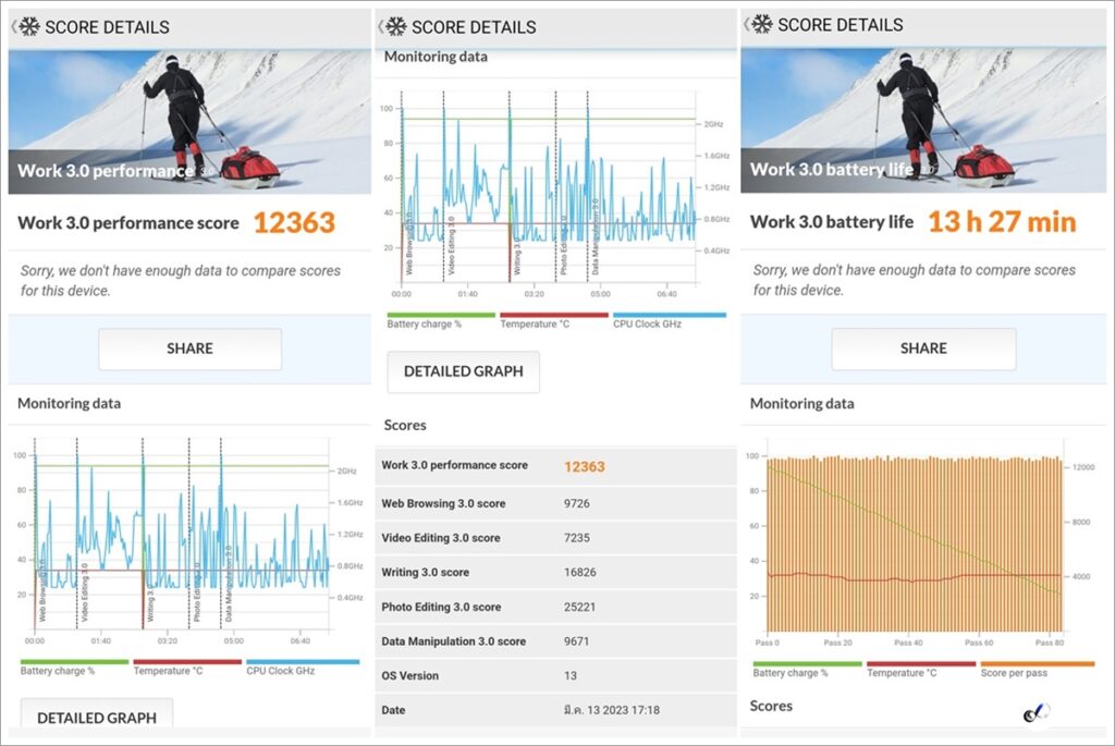 ส่วนแบตเตอรี่ให้มาที่ 5000mAh รองรับการชาร์จเร็ว 25W โดยการสแตนบายสามารถทำได้เกิน 2 วันสบายครับ รุ่นนี้ถือว่าแบตอึดมากทีเดียว การใช้งานทั่วไป ดูหนังฟังเพลงบ้าง เล่นเกม โทรออกเล่นโซเชียลต่างๆ ตลอดวัน สามารถใช้งานได้ข้ามวันสบาย สามารถดูคลิปวีดีโอได้นาน 21 ชม. ต่อเนื่อง
