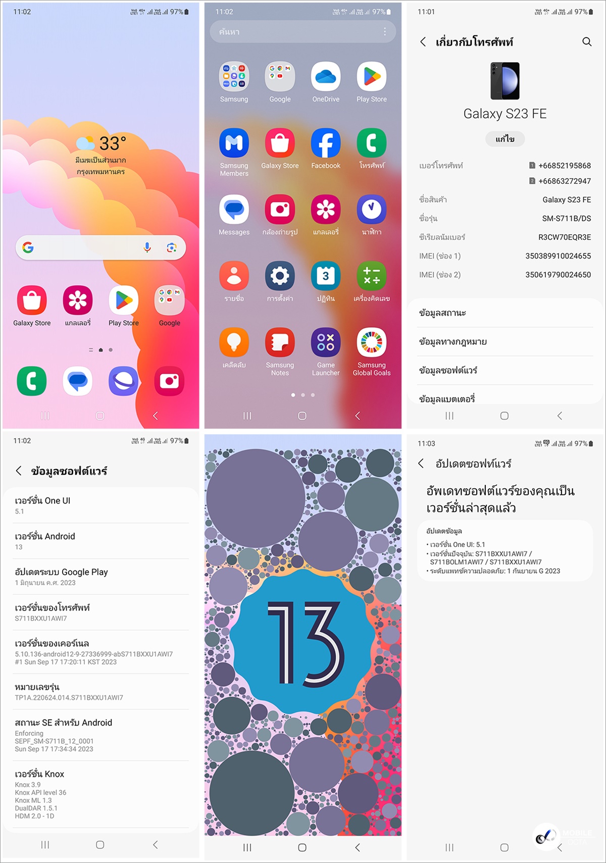 Galaxy S23 FE รันบนระบบปฏิบัติการ Android 13 และครอบทับด้วย One UI 5.1 ที่มาพร้อมฟังก์ชั่นใหม่ๆ มากมาย ช่วยให้ผู้ใช้งานใช้งานได้อย่างสะดวกมากขึ้น ไม่ว่าจะเป็นการตั้งค่า และตั้งค่าความเป็นส่วนตัว, เพิ่มประสิทธิภาพการทำงาน, ความปลอดภัย และการทำงานร่วมกับอุปกรณ์อื่นได้อย่างไหลลื่น