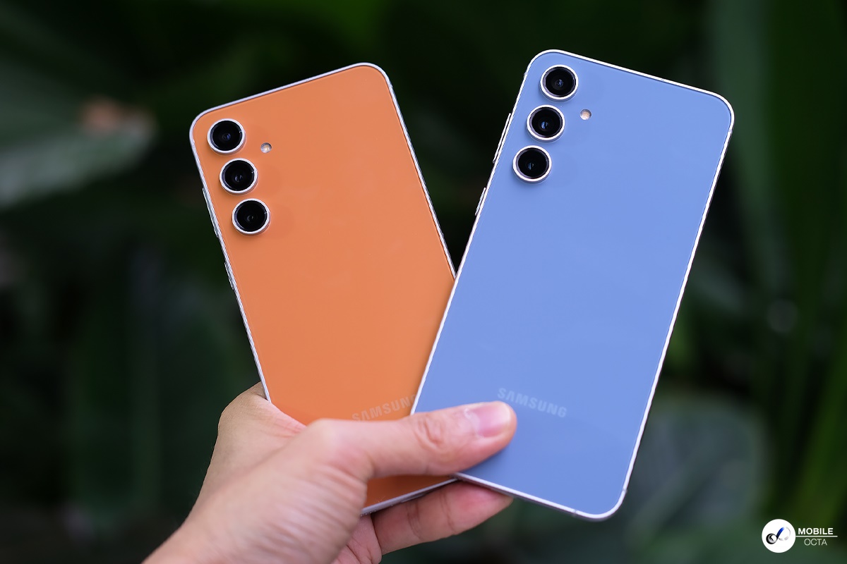 ด้านหลังดีไซน์ดูเรียบง่ายในสไตล์มินิมอล โดยมุมซ้ายด้านบนติดตั้งกล้อง 3 ตัวนูนเด่นขึ้นมาวางเรียงในแนวตั้ง โดยไม่มีฐานโมดูลรอง และมีไฟแฟลช LED อยู่ด้านขวาข้างเลนส์กล้อง ถัดลงมาตรงกลางด้านล่างมีโลโก้ Samsung