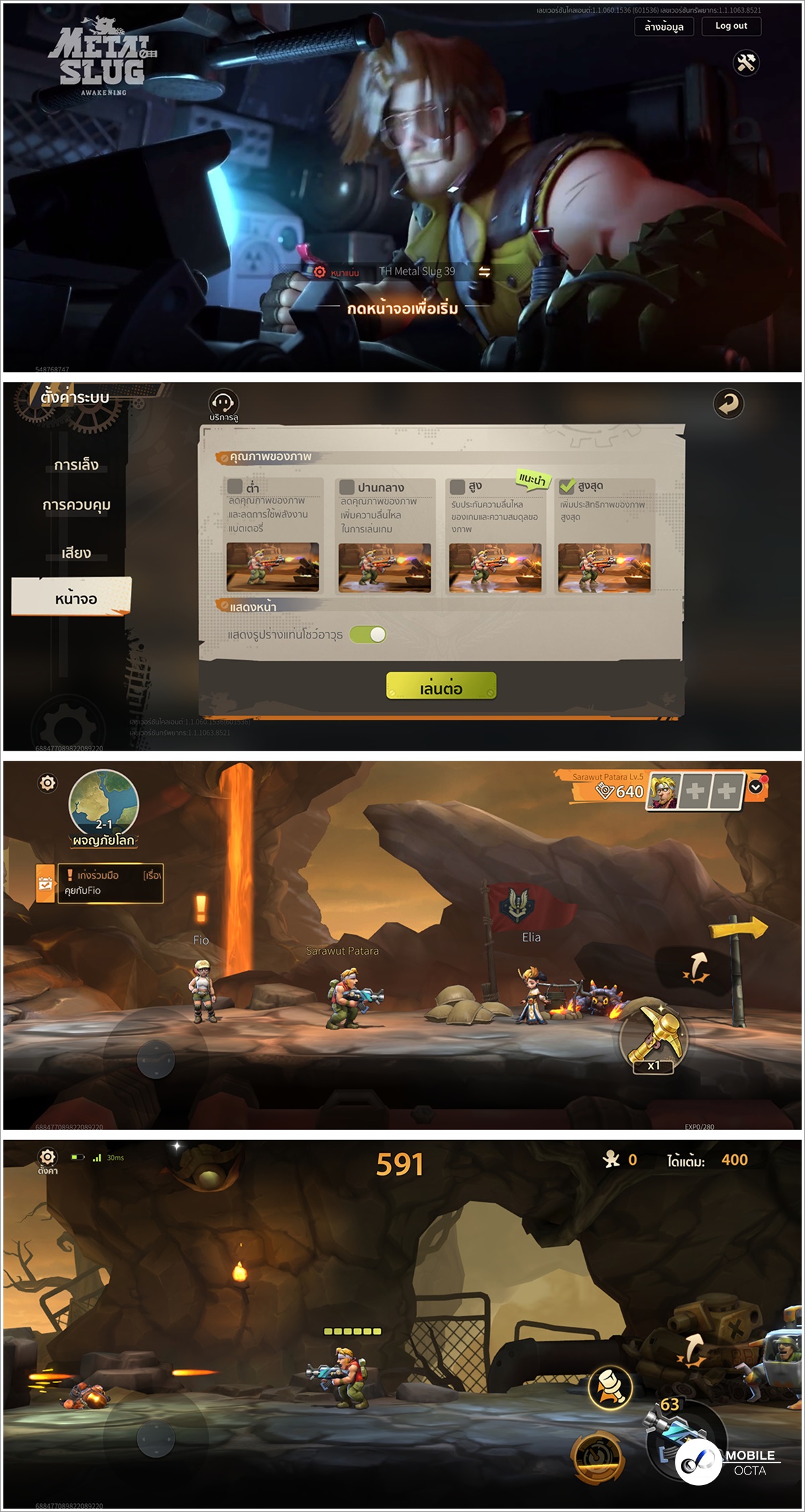 ทดสอบการเล่นเกม เริ่มต้นด้วย Metal Slug: Awakening เกมแนว Action Shooting ในรูปแบบ 3D ที่ภาพสวยคม สามารถปรับตั้งค่าคุณภาพของภาพสูงสุด ในการทดสอบใช้งานจริง พบว่าการการเคลื่อนที่ การยิง รวมถึงเอฟเฟกต์ภายในเกม เกมไม่กินพลังงานทรัพยากรเครื่องมากเกินไป ทำให้มีความสมูทลื่นไหลที่ดี ไม่รู้สึกถึงอาการแลค และยังมีความเสถียรในระดับที่น่าพึงพอใจมาก ๆ อีกด้วย