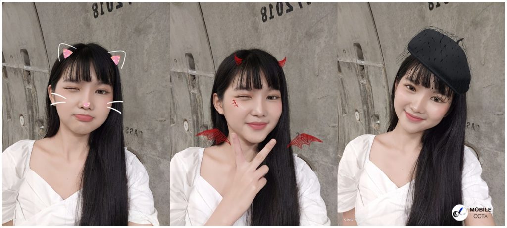 AR Stickers การใส่อีโมจิหรือสติ๊กเกอร์ 3D น่ารัก ๆ ฟรุ้งฟริ้ง มุ้งมิ้งลงไปในรูปถ่ายของเรา โดยรองรับการทำงานทั้งกล้องหน้าและหลัง สามารถบันทึกเป็นไฟล์ภาพนิ่งและภาพเคลื่อนไหว ทั้งนี้โหมด AR Selfie สามารถที่จะดีเทคตรวจจับภาพใบหน้าได้มากกว่า 1 ใบหน้าพร้อมกัน ทำให้เมื่อเราถ่ายเซลฟี่กับเพื่อน ๆ ตัวกล้องก็จะใส่ AR Stickers ให้เพื่อนที่อยู่ในเฟรมของเราด้วย