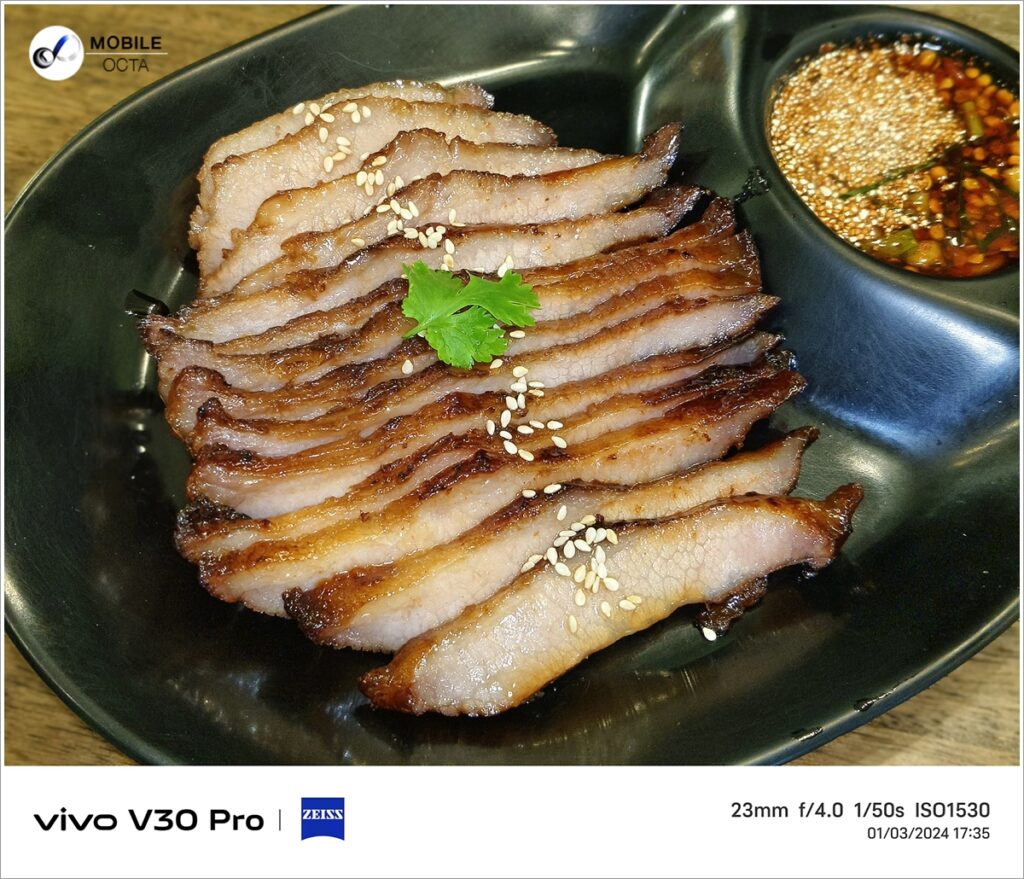 แต่จากรูปทางขวาที่ถ่ายด้วย vivo V30 Pro 5G พร้อมเปิดใช้งาน “Aura Light Portrait 3.0” จะให้สีสันที่ดูเป็นธรรมชาติและสมจริงกว่าอย่างเห็นได้ชัดเจน