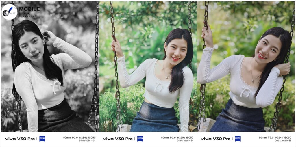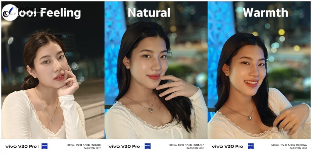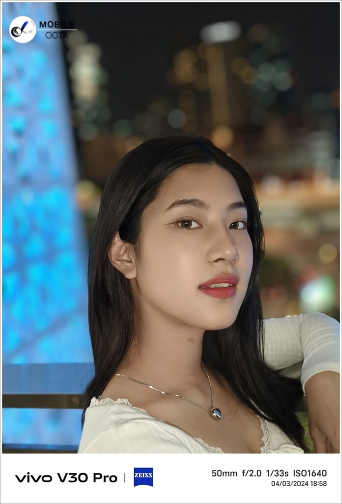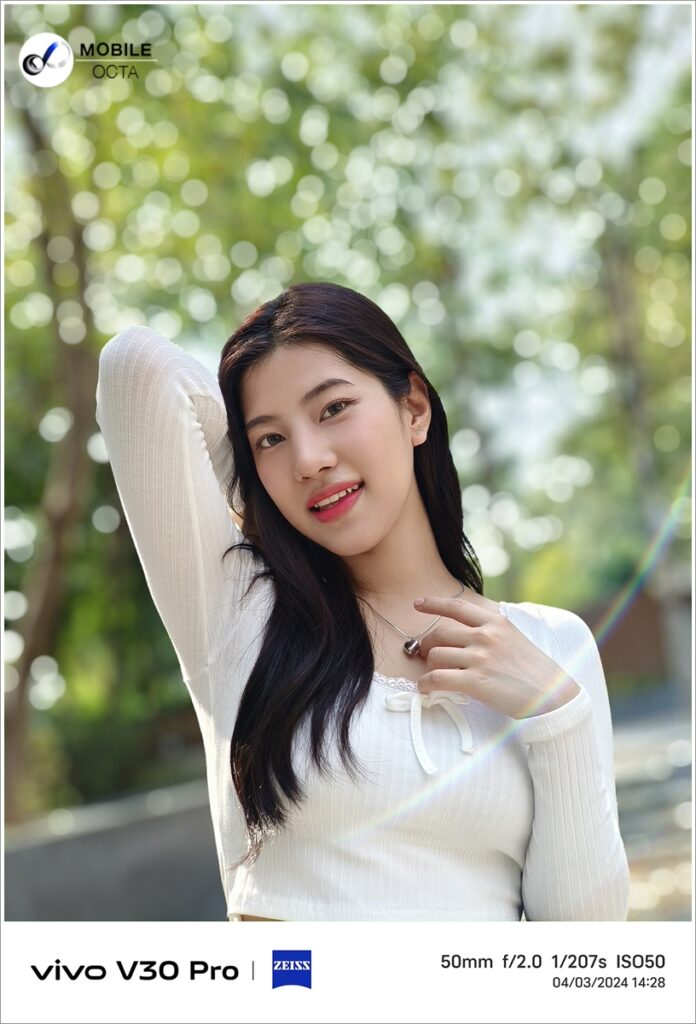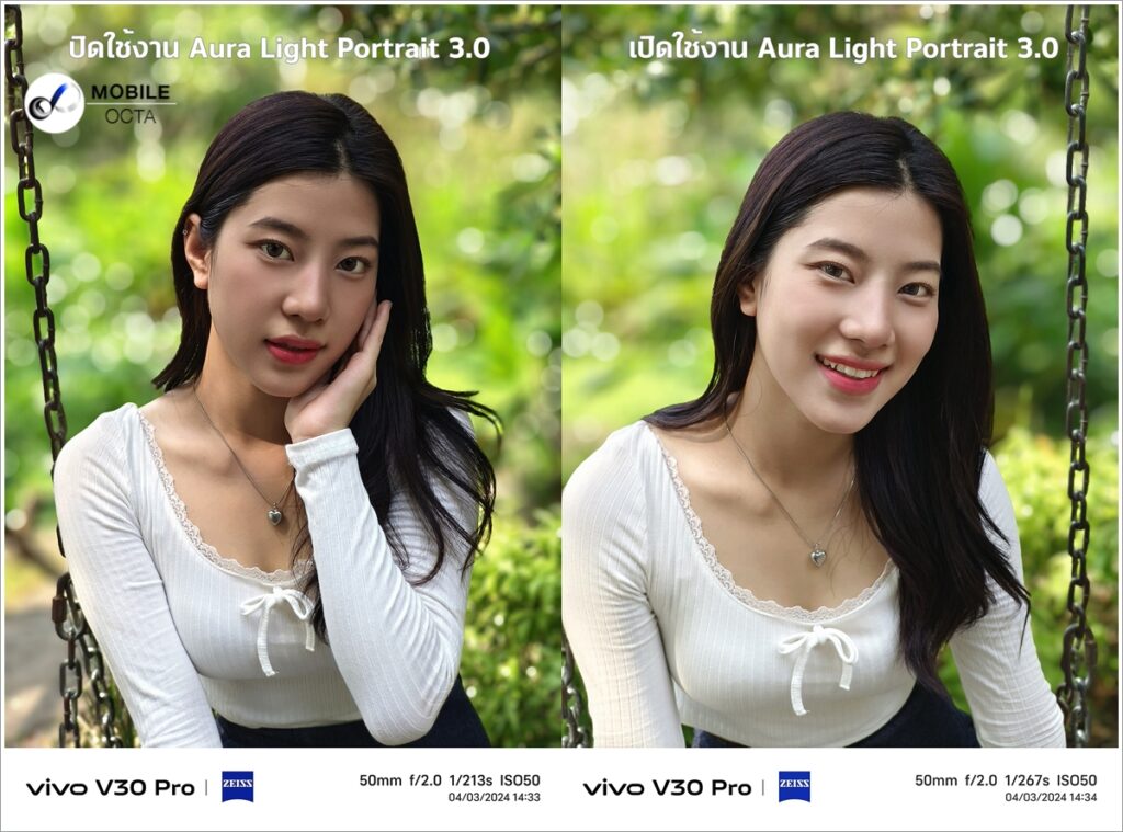 มาถึงตรงนี้เราจะเห็นได้ว่า vivo V30 Pro 5G มาพร้อมความโดดเด่นที่ยกระดับขึ้นไปอีกขั้น ด้วยเลนส์โปรจากความร่วมมือระหว่าง vivo และค่าย ZEISS ทั้งในระดับ Hardware และ Software เมื่อผสานกับแสงออร่ารุ่นอัปเกรดใหม่ล่าสุด “Aura Light Portrait 3.0” ที่ได้ถูกออกแบบมาเพื่อการถ่ายภาพบุคคลในยามค่ำคืนได้ดีขึ้นกว่ารุ่นก่อนหน้า ส่งผลให้ไม่ว่าจะแสงน้อยแค่ไหน vivo V30 Pro 5G ก็สามารถถ่ายพอร์ตเทรตได้อย่างยอดเยี่ยม ทั้งการสร้างมิติของภาพ ดึงดีเทลที่ขาดหายให้กลับมา พร้อมมอบความสมดุลสมจริงให้กับภาพบุคคลที่ไม่สามารถพบเจอได้บนสมาร์ตโฟนทั่ว ๆ ไป และเมื่อจับคู่กับคุณภาพเลนส์ระดับโปรของ ZEISS นี่จึงเป็นการยกระดับการถ่ายภาพ Portrait ที่ดีที่สุดของ V Series อย่างที่ไม่เคยมีมาก่อน