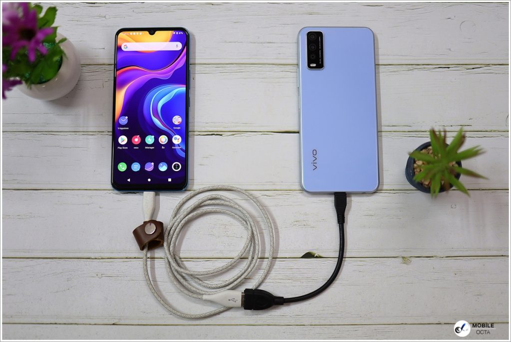 นอกจากจะมีแบตใหญ่สุดอึดถึง 5,000mAh แล้ว Vivo Y12s ยังมาพร้อมฟีเจอร์ Reverse Charging ที่แปลงร่างให้ Y12s กลายเป็นพาวเวอร์แบงค์เพื่อจ่ายไฟให้กับอุปกรณ์อื่น ๆ ไม่ว่าจะเป็นสมาร์ทโฟน แท็บเล็ต สมาร์ทวอทช์ ผ่านทางสาย OTG (อุปกรณ์เสริมไม่มีแถมมาให้ในกล่อง) เรียกว่านอกจากแบตอึดแล้วยังทำหน้าที่เป็นแบตเตอรี่สำรองที่พกพาติดตัวไปตลอดเวลาอีกด้วย