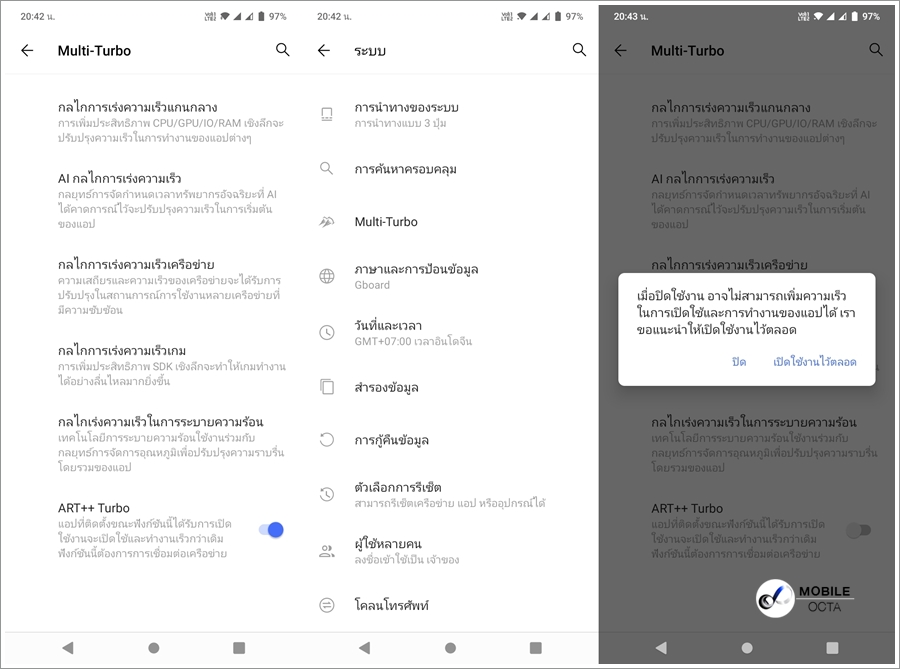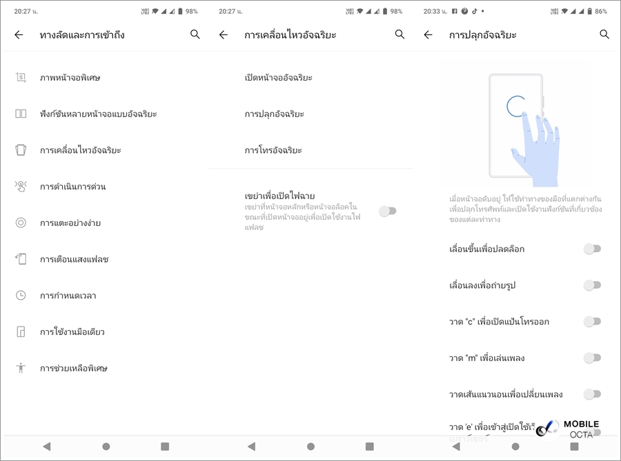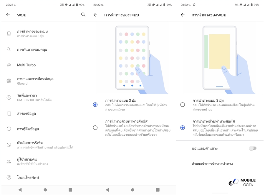 สำหรับปุ่มนำทาง สามารถปรับตั้งค่าให้เหมาะกับความถนัดของเราได้ตามที่ต้องการ นอกจากนี้ยังมี Full Screen gesture ที่มาพร้อมฟีเจอร์สั่งการง่าย ๆ และสามารถใช้งานจอแสดงผลได้แบบเต็ม 100%