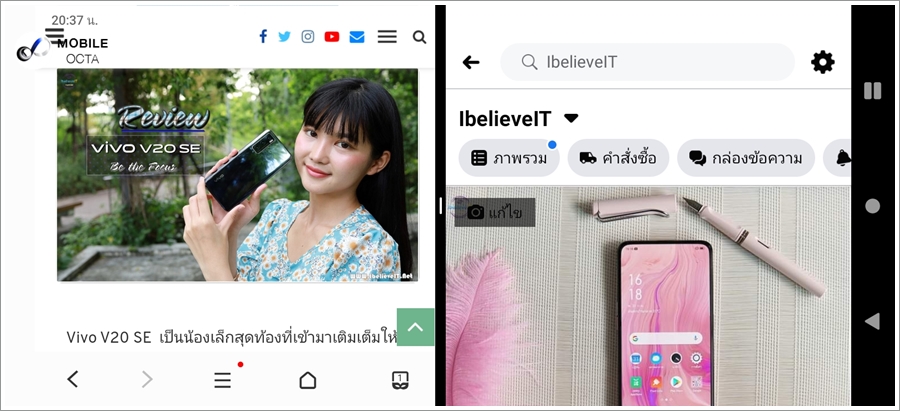 ซึ่งบน Vivo Y12s นั้นเรียกใช้งานการแบ่งหน้าจอได้ง่าย ๆ เพียงลาก 3 นิ้วจากด้านล่างขึ้นไปยังด้านบนของจอแสดงผล ก็จะสามารถใช้งาน 2 แอปฯในหนึ่งหน้าจอได้ในทันที