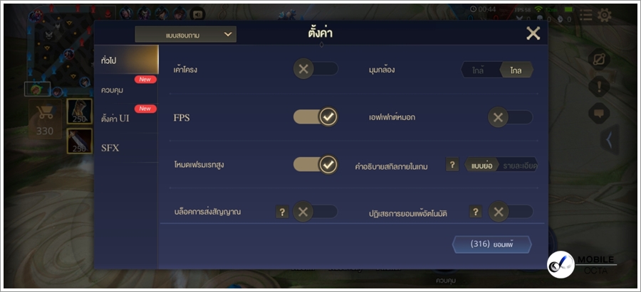 ต่อกันด้วย ROV อีกหนึ่งเกมฮิตของบ้านเรา โดยค่าเริ่มต้น ตั้งค่าภาพ HD ในระดับมาตรฐาน การแสดงผลระดับสูง พร้อมเลือกเฟรมเรทสูงโดยรักษาความ stable ไว้ที่ระดับ 4xfps แบบต่อเนื่อง ในภาพรวม Vivo Y12s ถือว่าแรงพอที่จะตีป้อมได้อย่างสมูทไหลลื่น