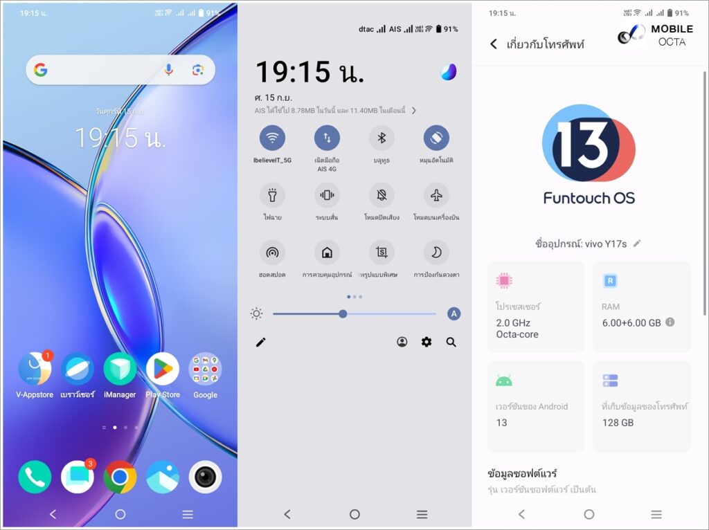 vivo Y17s พร้อมมอบประสบการณ์การใช้งานลื่นไหลกว่าเดิมด้วย Funtouch OS 13 ที่รันบนพื้นฐานของ Android 13 โดยระบบปฏิบัติการ Funtouch OS 13 นำเสนอชุดไอคอนและวิดเจ็ตใหม่ที่สร้างสรรค์ ซึ่งจะแสดงแอปพลิเคชันที่ใช้เป็นประจำ และยังช่วยอำนวยความสะดวกในการใช้งานด้วย Widgets อันหลากหลายโดยที่ไม่ต้องเสียเวลากดเปิดแอปพลิเคชัน พร้อมมอบประสบการณ์การใช้งานที่ดียิ่งขึ้น