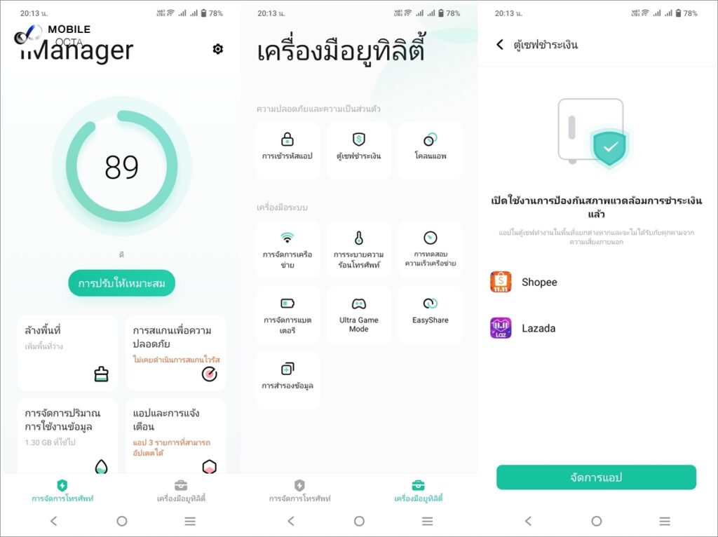 ใช้งานได้เต็มประสิทธิภาพและปลอดภัย ด้วยผู้ช่วยอัจฉริยะ iManager ที่มาพร้อมความสามารถครบครัน สามารถตรวจสอบความปลอดภัยสมาร์ตโฟนของคุณทั้งสแกนไวรัส และระบุไฟล์ที่เป็นอันตรายต่อสมาร์ตโฟน รวมทั้งยังมาพร้อมความสามารถอีกมากมาย ไม่ว่าจะเป็นการลบไฟล์ขยะ, ระบายความร้อน, สำรองข้อมูล, และจัดการด้านพลังงานเป็นต้น