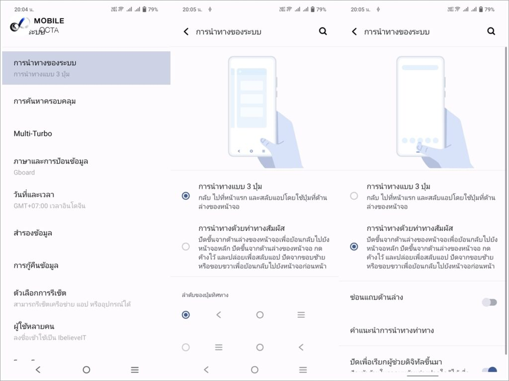 สำหรับปุ่มนำทาง สามารถปรับตั้งค่าให้เหมาะกับความถนัดของเราได้ตามที่ต้องการ นอกจากนี้ยังมี Full Screen gesture ที่มาพร้อมฟีเจอร์สั่งการง่าย ๆ และสามารถใช้งานจอแสดงผลได้แบบเต็ม 100%