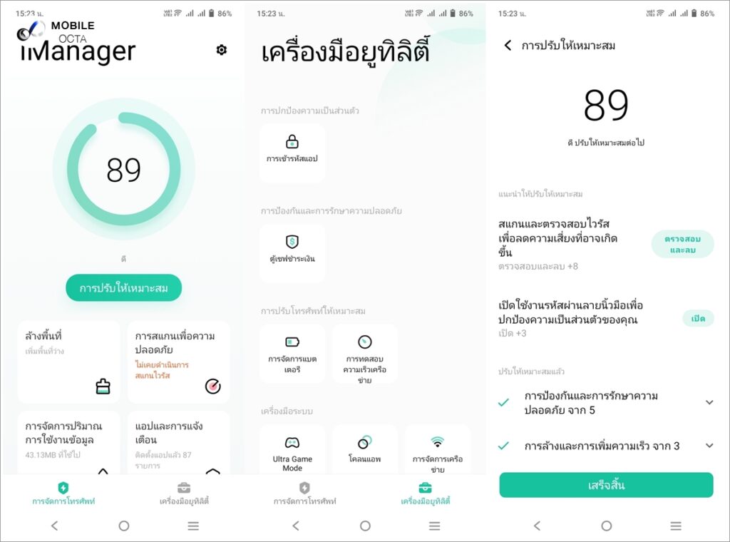 ใช้งานได้เต็มประสิทธิภาพและปลอดภัย ด้วยผู้ช่วยอัจฉริยะ iManager ที่มาพร้อมความสามารถครบครัน สามารถตรวจสอบความปลอดภัยสมาร์ตโฟนของคุณทั้งสแกนไวรัส และระบุไฟล์ที่เป็นอันตรายต่อสมาร์ตโฟน รวมทั้งยังมาพร้อมความสามารถอีกมากมาย ไม่ว่าจะเป็นการลบไฟล์ขยะ, ระบายความร้อน, สำรองข้อมูล, และจัดการด้านพลังงานเป็นต้น