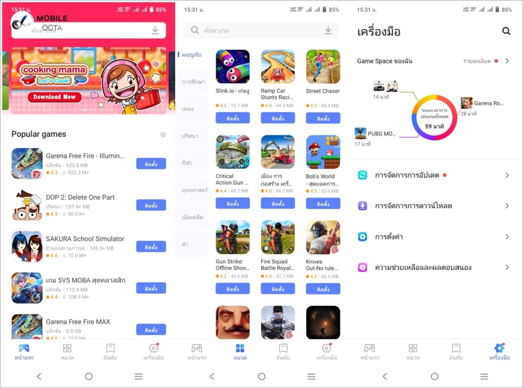 Game Center เป็นอีกหนึ่งฟีเจอร์สำหรับครับคอเกม โดยเป็นศูนย์รวมของเกมที่น่าสนใจ ที่มีการแบ่งหมวดหมู่ไว้อย่างชัดเจน ทำให้ง่ายต่อการค้นหาและดาวน์โหลด นอกจากนี้ Game Space ยังมาพร้อมความสามารถในการเข้าถึงข้อมูลสำคัญในระหว่างการเล่นเกม เช่น ดูข้อมูล CPU อุณหภูมิ และปริมาณข้อมูลการใช้งาน โดยทำงานร่วมกับ Ultra Game Mode ที่สามารถปิดข้อความ และการแจ้งเตือนต่าง ๆ ในขณะเล่นเกม ให้คุณสามารถมุ่งเน้นไปกับการเล่นเกมได้อย่างเต็มที่
