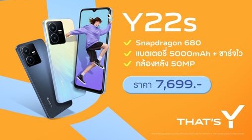 ทั้งนี้ vivo Y22s พร้อมวางจำหน่ายใน 2 สี ได้แก่สีน้ำเงิน Starlit Blue และสีฟ้า Summer Cyan ในราคา 7,699 บาท สามารถเป็นเจ้าของได้แล้ววันนี้ที่ vivo Brandshop ทุกสาขา และตัวแทนจำหน่ายทั่วประเทศ