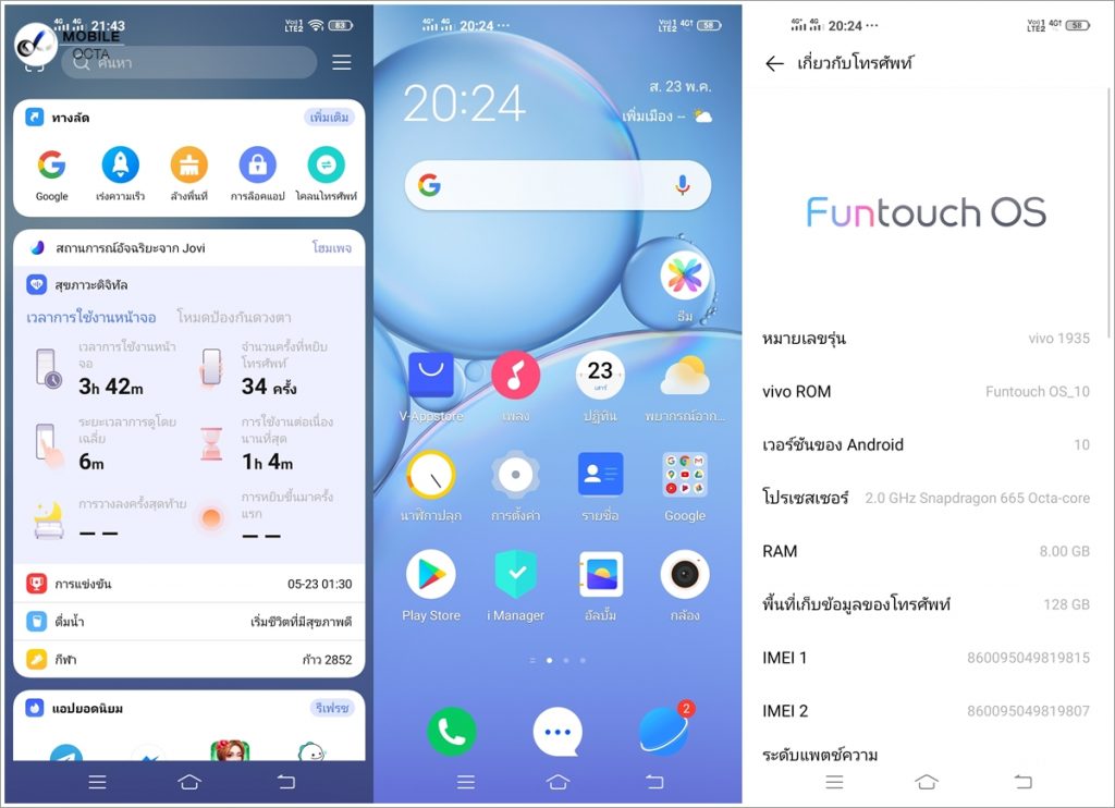 โหมดใช้งานมือเดียวและการจับภาพหน้าจอที่มีความหลากหลาย สำหรับการจับภาพหน้าจอก็ถือว่าเป็นอีกหนึ่งฟีเจอร์พิเศษของ Vivo โดยสามารถจับภาพหน้าจอได้ยืดหยุ่นมาก ๆ ทั้งการลาก 3 นิ้วขึ้นไปจากหน้าจอแสดงผล