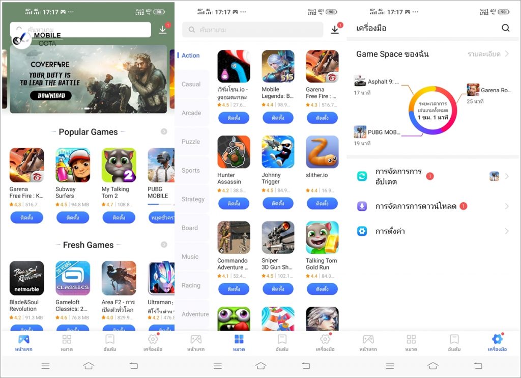 Game Center เป็นอีกหนึ่งฟีเจอร์ใหม่ โดยเป็นศูนย์รวมของเกมที่น่าสนใจ มีการแบ่งหมวดหมู่ไว้อย่างชัดเจน ทำให้ง่ายต่อการค้นหาและดาวน์โหลด นอกจากนี้ Game Space ยังมาพร้อมความสามารถในการเข้าถึงข้อมูลสำคัญในระหว่างการเล่นเกม เช่น ดูข้อมูล CPU อุณหภูมิ และปริมาณข้อมูลการใช้งาน โดยทำงานร่วมกับ Ultra Game Mode ที่สามารถปิดข้อความ และการแจ้งเตือนต่าง ๆ ในขณะเล่นเกม ให้คุณสามารถมุ่งเน้นไปกับการเล่นเกมได้อย่างเต็มที่