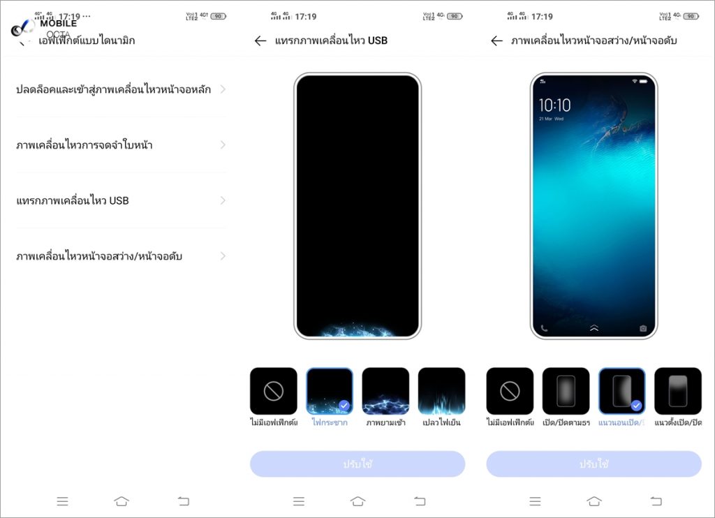 เอฟเฟ็กต์แบบไดนามิก โดยเมื่อเสียบสาย USB หรือเปิด-ปิดหน้าจอ จะแสดงเอฟเฟกต์แสงไฟเคลื่อนไหวที่หน้าจอ เป็นการเพิ่มลูกเล่นและความสวยงามให้การใช้งานยิ่งขึ้น