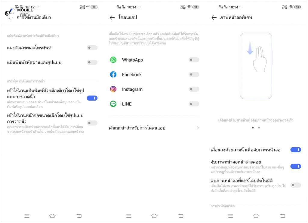 รวมไปถึงการจับภาพหน้าจอแบบยาวๆ หรือรูปแบบอิสระ อีกทั้งยังบันทึกหน้าจอในรูปแบบของวีดีโอได้อีกด้วย และอีกหนึ่งฟีเจอร์ที่ขาดไม่ได้ก็คือแอพโคลน ที่รองรับการใช้งานแอปพลิเคชั่นโซเชียลยอดนิยม เช่น Line, Facebook หรือ Instagram ได้พร้อม ๆ กันถึง 2 แอคเคาท์ในเครื่องเดียว