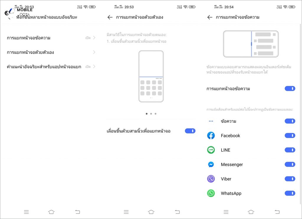 ฟีเจอร์ยอดนิยมที่มีมาให้ใช้งานอย่างยาวนาน ก็คือโหมดการแบ่งหน้าต่างเพื่อใช้งาน 2 แอปพลิเคชั่นไปพร้อม ๆ กัน เช่นแชทไปด้วยด้วยพร้อมดู YouTube ในขณะเดียวกัน