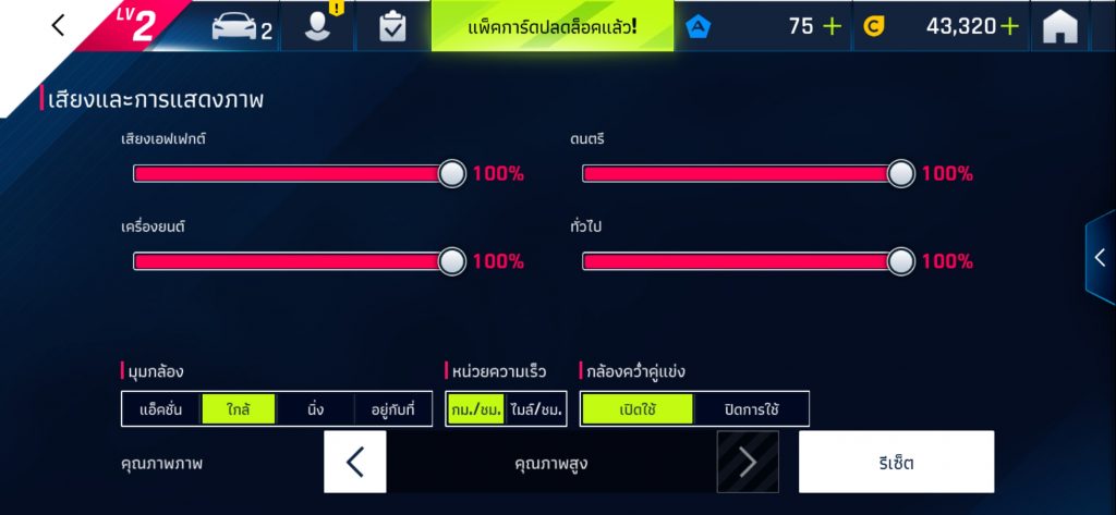 Asphalt 9 เลือกตั้งค่ากราฟิก “คุณภาพสูง” ในภาพรวมไม่พบอาการหน่วงหรือสะดุดให้เห็น สามารถสัมผัสความเร็ว แรง ลื่นไหลได้ตลอดการแข่งขัน