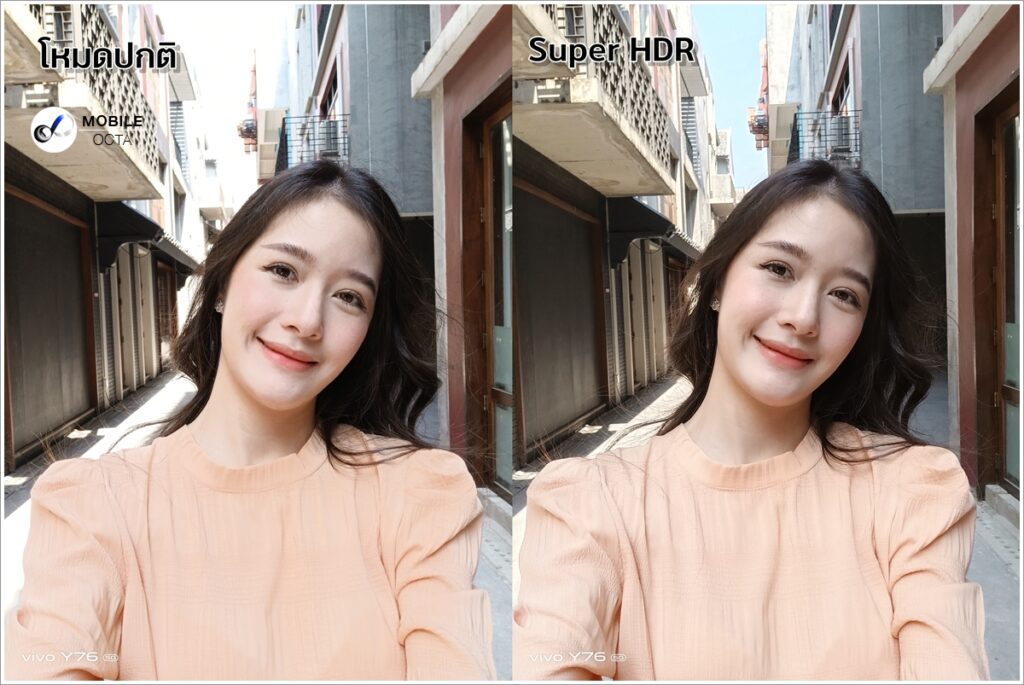 สำหรับโหมด Super HDR จะช่วยปรับสีสันแบบอัตโนมัติในส่วนของภาพที่สว่างจ้า และปรับรายละเอียดให้คมชัดในส่วนเงามืด เพื่อให้ได้ภาพที่สมบูรณ์แบบทุกรายละเอียด ประโยชน์ของโหมดนี้ก็คือ เมื่อเราถ่ายเซลฟี่ในสภาพแสงที่มีความเปรียบต่างมาก ๆ หรือเมื่อย้อนแสง รวมถึงในที่แสงน้อย ถ้าเปิด HDR จะช่วยในเรื่องการเกลี่ยสภาพแสงโดยรวมและดึงดีเทลของภาพให้กลับมามีความสมดุล