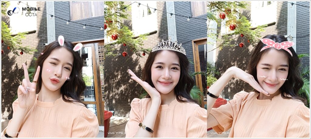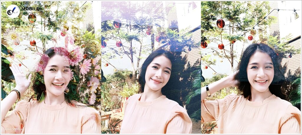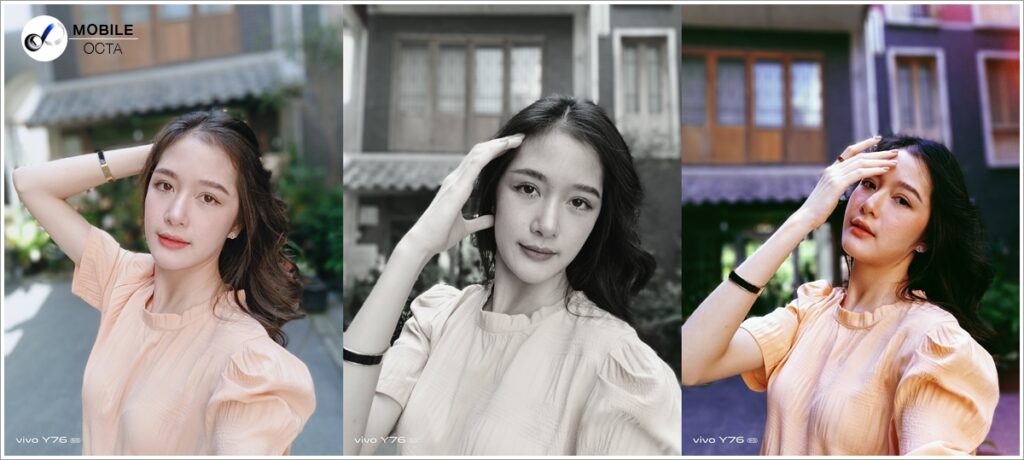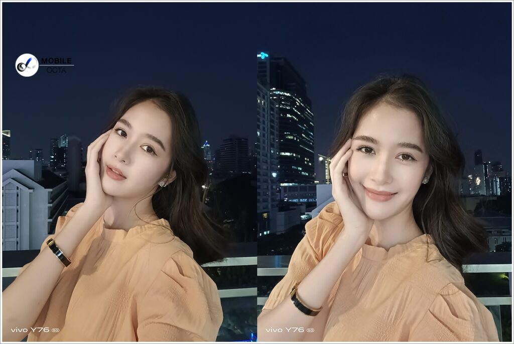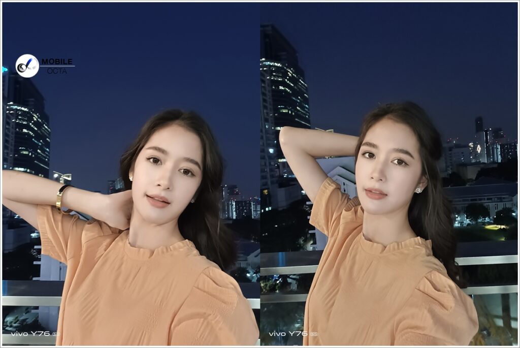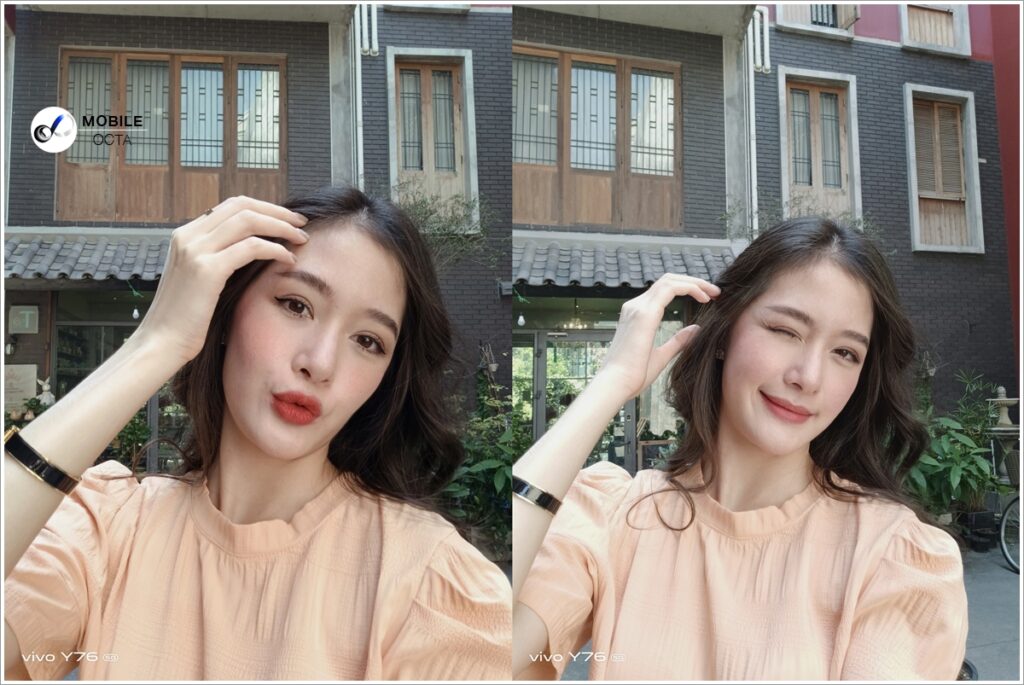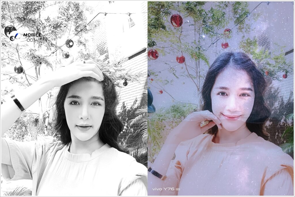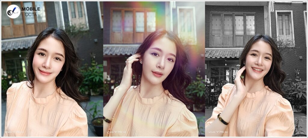 ฟีเจอร์ Portrait light effect จะช่วยเสริมให้การถ่ายภาพบุคคลมีความน่าตื่นตาตื่นใจ โดยจะให้ฟิลลิ่งที่แปลกใหม่โดยไม่ต้องพึ่งพาอุปกรณ์เสริม ตัวอัลกอริทึม AI ของ vivo Y76 5G จะปรับภาพใบหน้าสองมิติให้กลายเป็นสามมิติ และปรับแสงที่ใบหน้า ให้ภาพออกมามีความโดดเด่น ซึ่งเราสามารถเลือกเอฟเฟ็กต์ได้ทั้งแบบ 6 รูปแบบประกอบด้วย Natural light, Studio light, Stereo light, Loop light, Rainbow light, และ Monochrome background