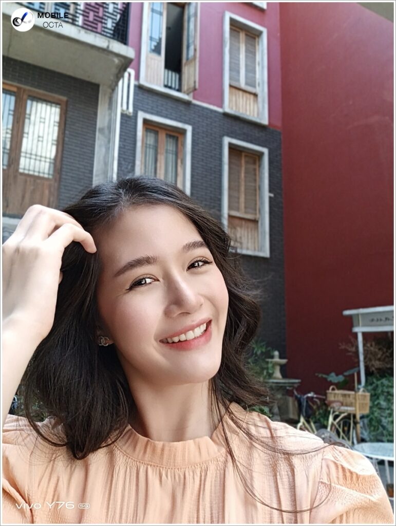 กล้องหน้ามีโหมด Super HDR ที่สามารถถ่ายภาพย้อนแสงได้อย่างยอดเยี่ยม พร้อมปรับสมดุลสีสันของภาพอย่างแม่นยำ และให้ความเป็นธรรมชาติทั้งในส่วนของฉากหลังและตัวแบบ