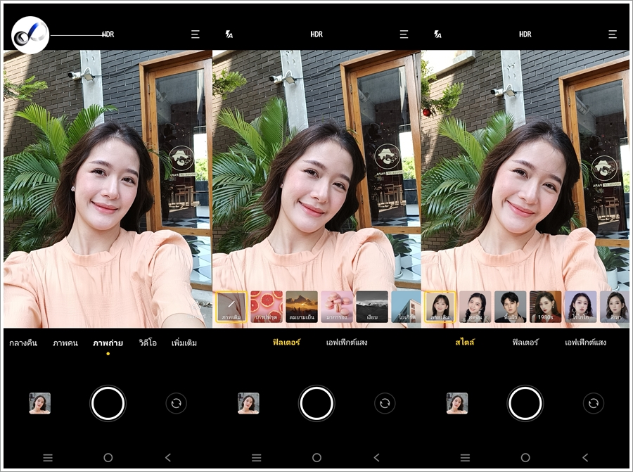 สำหรับโหมด Multi-Style Portrait จะมีสไตล์ที่เลือกใช้งานได้ 9 รูปแบบ ประกอบไปด้วย Fresh / Texture / Holiday / Rococo / Gray /1980s / Kyoto cherry / Film / Tokyo Style ซึ่งให้ฟิลลิ่งคล้ายกับโปรไฟล์สี ที่มีให้ใช้งานบนกล้องระดับมืออาชีพของหลาย ๆ แบรนด์นั่นเอง