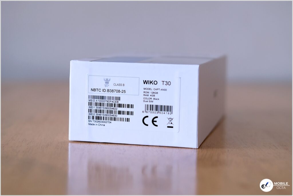 ตัวกล่องแพ็คเกจจิ้งมาในดีไซน์มาตรฐานของ WIKO ที่เน้นความเรียบง่าย มีการระบุชื่อรุ่น WIKO T30 5G ชัดเจนที่หน้ากล่อง