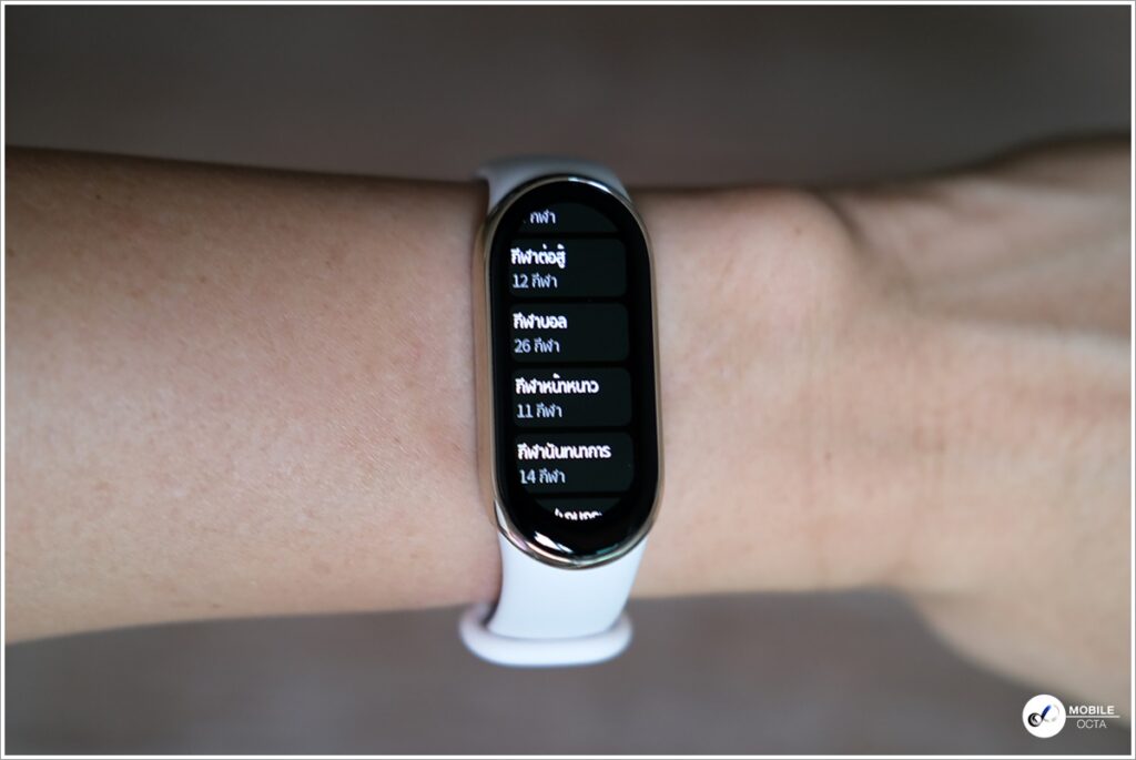 นอกจากนี้ภายในฟังก์ชันออกกำลังกายยังมีการพัฒนาให้ใช้ร่วมกับเครื่องออกกำลังกายภายใต้แบรนด์ Xiaomi รวมถึงมีวิดีโอเทรนนิ่งมาให้อีกด้วย ฟังก์ชันนี้ถือว่ามีประโยชน์ และความรู้สึกเหมือนมีเทรนเนอร์ส่วนตัวเลย