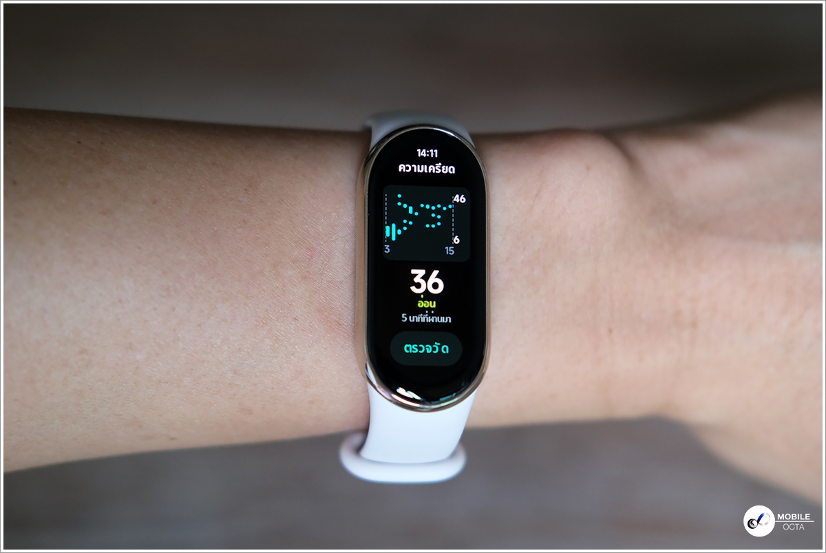 Xiaomi Smart Band 8 ถือเป็นสายรัดข้อมืออัจฉริยะรุ่นล่าสุดของ Xiaomi ที่มาพร้อมดีไซน์ทรงแคปซูลเหมือนเดิม แต่เพิ่มความเป็นแฟชั่นด้วยกรอบโลหะพร้อมสายรัดแบบปลดเร็ว และไลฟ์สไตล์เข้ามา สามารถเลือกได้เลยว่าจะใส่บนข้อมือ หรือห้อยเป็นสร้อยคอก็ดูมีความเก๋ไปอีกแบบ รวมถึงมีหน้าจอแสดงผลแบบ AMOLED ขนาด 1.62 นิ้ว ที่มีความสว่างสดใส และมีอัตรารีเฟรชเรท 60Hz ใช้งานได้อย่างลื่นไหลขึ้น