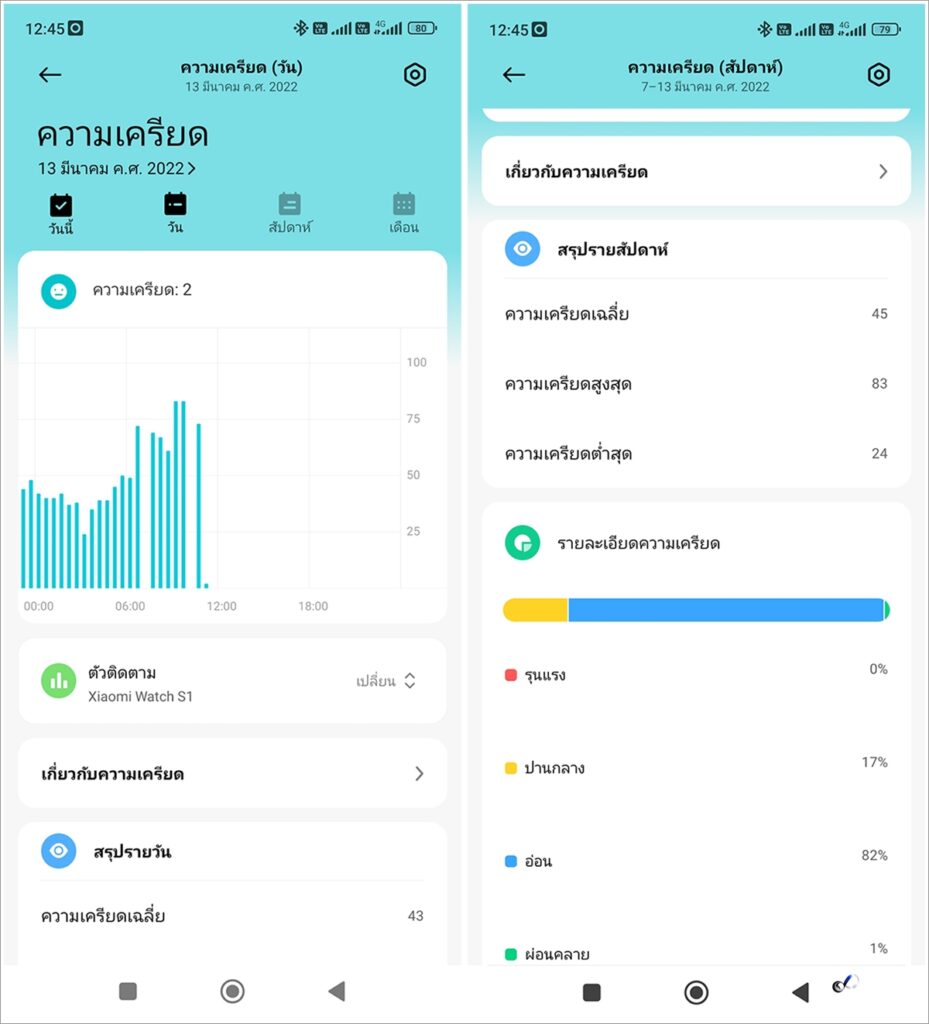 มีฟังก์ชั่นตรวจวัดระดับความเครียดว่าอยู่ในระดับไหน โดยแบ่งออกเป็น 4 ระดับด้วยกัน คือ ผ่อนคลาย, อ่อน, ปานกลาง, อ่อน และรุนแรง ให้คุณทราบระดับความเครียดที่เกิดขึ้นกับตัวคุณ เพื่อจะได้ทำการผ่อนคลายอารมณ์ เพราะความเครียดก็ถือเป็นปัญหาที่ทำให้สุขภาพร่างกายแย่ได้