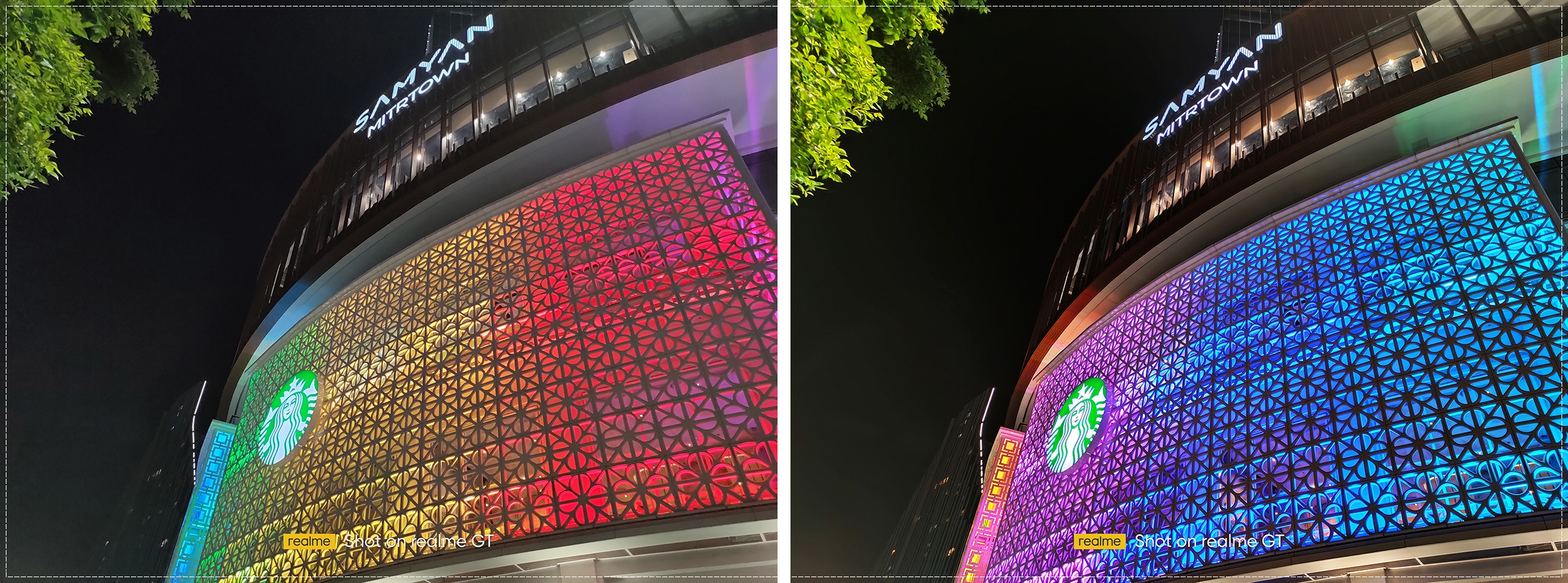 กล้อง realme GT 5G ยังมาพร้อม Night Filters ฟิลเตอร์กลางคืนยอดนิยมถึง 3 ตัว ได้แก่ Cyberpunk, Flamingo และ Modern Gold ช่วยเพิ่มความสนุกในการถ่ายภาพกลางคืนยิ่งขึ้น