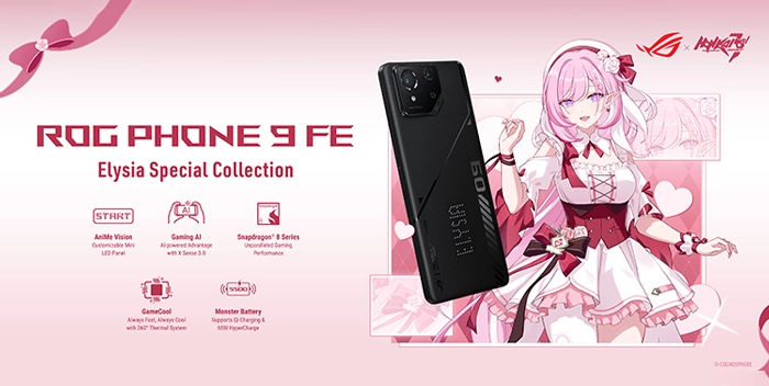 เอซุส ภายใต้แบรนด์รีพับบลิค ออฟ เกมเมอร์ส (ROG) ประกาศเปิดตัวคอลเลกชันเกมมิ่งโฟนสุดพิเศษ “ROG Phone 9 FE x Honkai Impact 3rd Elysia’s Special Collection” ที่ได้จัดทำร่วมกับค่าย HoYoverse เจ้าของเกมมือถือชื่อดังอย่าง Honkai Impact สุดยอดเกมแนว Action RPG ระดับโลก สไตล์อนิเมะต่อสู้สุดมันส์