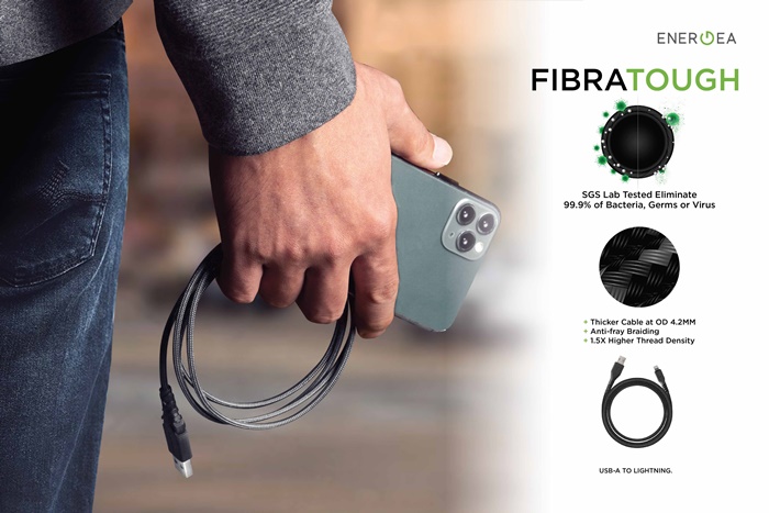 โดยเป็นที่ทราบกันดีว่าเชื้อโรคต่างๆ รอบตัวเรานั้นสามารถแพร่กระจายอย่างง่ายดายด้วยการสัมผัส ดังนั้น “มือ” ของเราจึงเป็นอวัยวะที่นำมาสู่แพร่การติดเชื้อโรคต่างๆ ได้อย่างดี ขณะเดียวกัน การนำสายชาร์จไปใช้งานตามที่ต่างๆ ก็อาจทำให้ปนเปื้อนกับเชื้อโรค ได้โดยที่ไม่รู้ตัว ด้วยเหตุนี้ ผู้นำด้านผลิตสายชาร์จแบรนด์ Energea จึงได้นำนวัตกรรม Nano Silver Ion ที่ไม่ใช่แค่เพียงเคลือบ แต่ใส่ส่วนผสมลงไปในวัสดุการผลิตสายชาร์จ 3 รุ่น คือสายชาร์จรุ่น FibraTough, DuraGlitz และ AluTough Edge เพื่อช่วยฆ่าเชื้อโรคพร้อมทั้งหยุดยั้งการเจริญเติบโตของเชื้อโรคบนสายชาร์จตลอดอายุการใช้งาน นอกจากนี้ยังมีการยืนยันผลทดสอบจาก SGS Lab ที่ยืนยันว่า Nano Silver Ion สามารถกำจัดแบคทีเรีย เชื้อรา และเชื้อไวรัสได้ถึง 99.9% นอกจากนี้ยังกำจัดเชื้อแบคทีเรียได้ถึง 80% ภายใน 15 นาที โดยสายชาร์จรุ่นใหม่นี้ มีการทำงาน ที่สามารถหยุดยั้งการแพร่เชื้อ 3 ขั้นตอน คือ